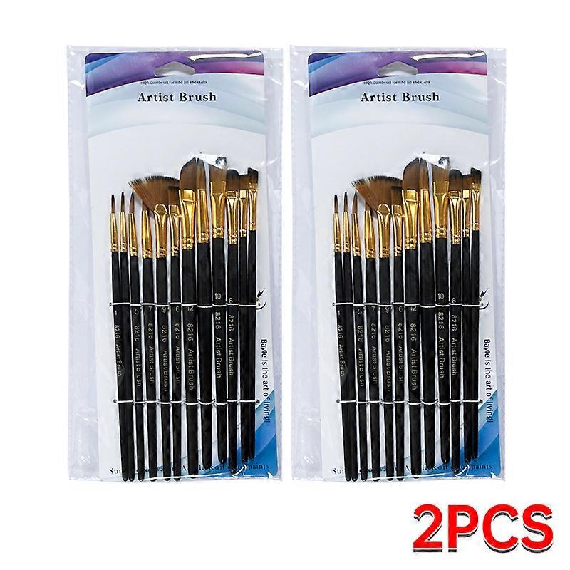 12PCs Bristle Brush Set Nylon Flat Brushes Watercolor Brushes Oil Paint Brush for Artists Amateur Acrylic Painting Art Supplies