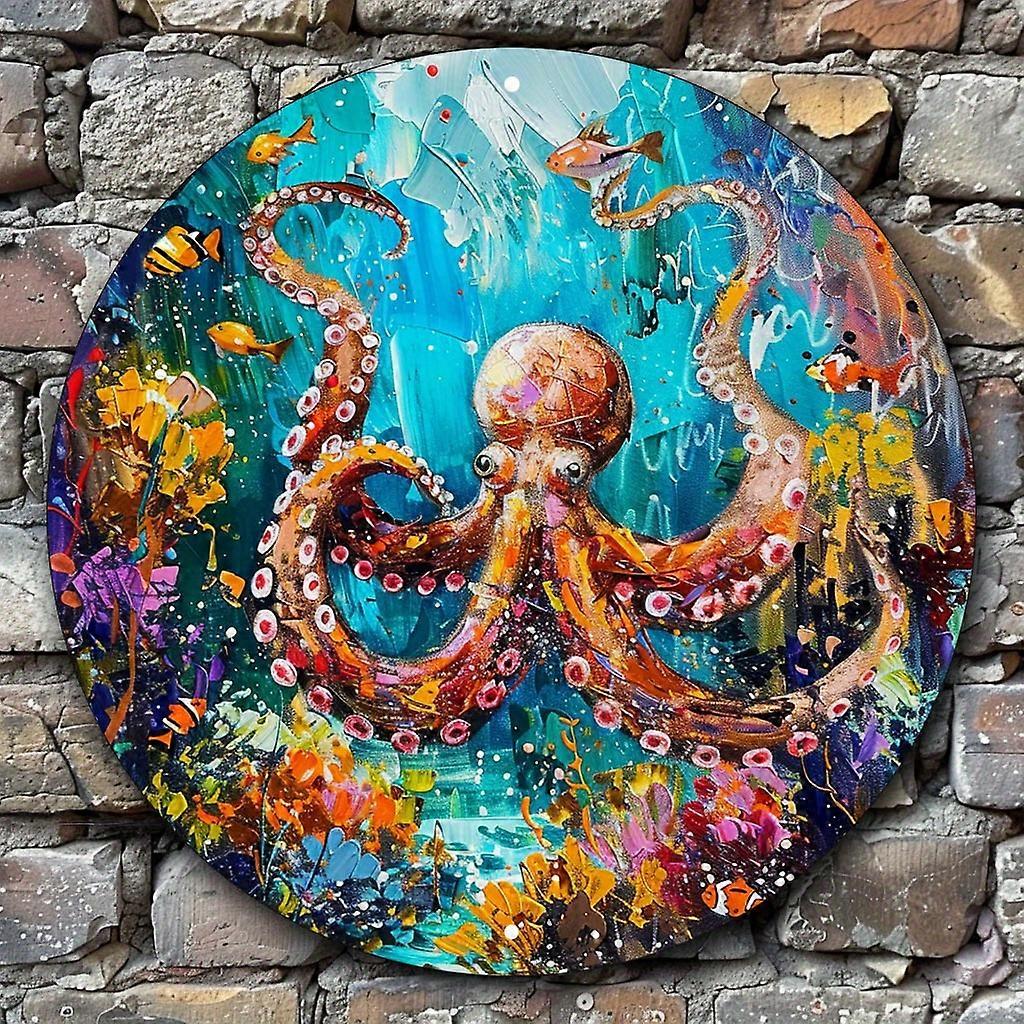 1pc Octopus Aluminum Metal Wall Sign - Vibrant Coral Reef & Tropical Fish Scene - Weather Resistant for Home, Garage, Bar Decor - Ideal for Weddings,