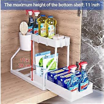 Space Saving 2 Tier Pull Out Storage Box Durable Large Capacity Kitchen Bathroom Essential Drawer Organizer