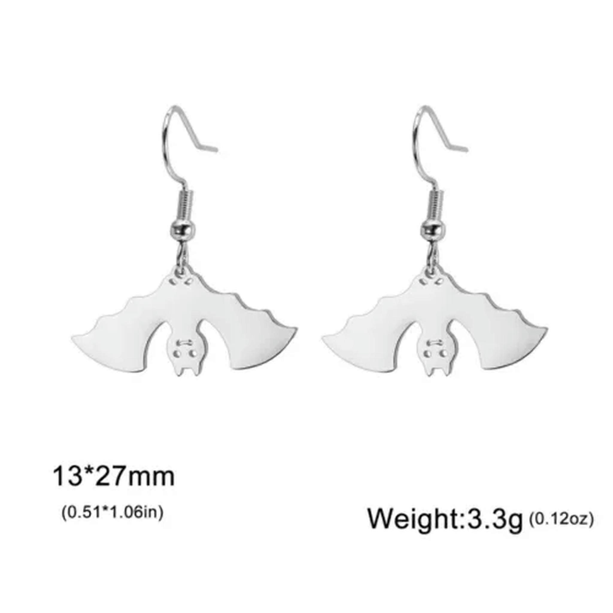 RSAMD Punk Bat Drop Earrings for Women Girls Animal Inverted Bat Dangle Earrings-Steel Color