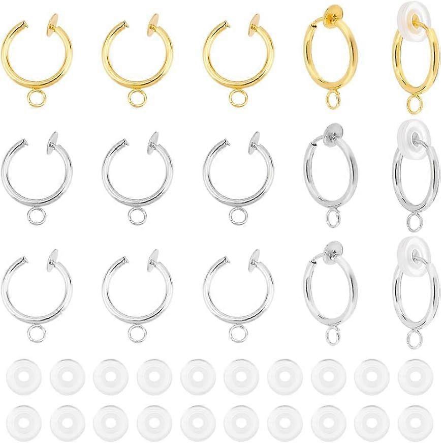 24Pcs 3 Colors Clip-on Earring Converters Non-Pierced Brass Findings with Loops & Silicone Pads for DIY Earring Making Accessory