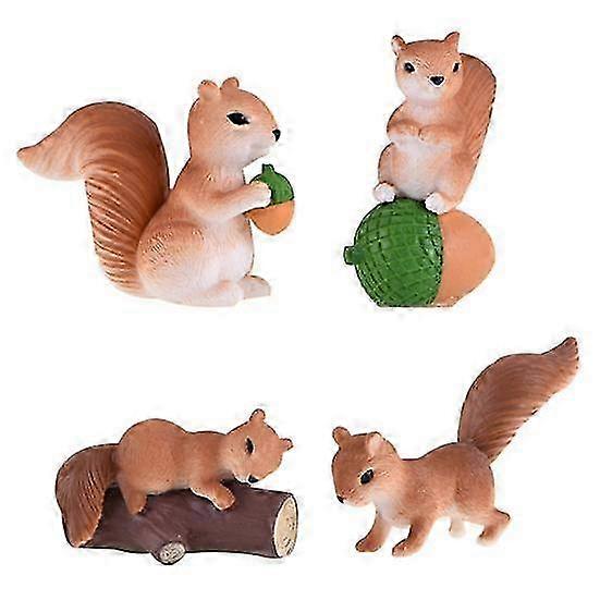Miniature Squirrel Set for Bonsai Decor 4Pcs Animal Garden Figures