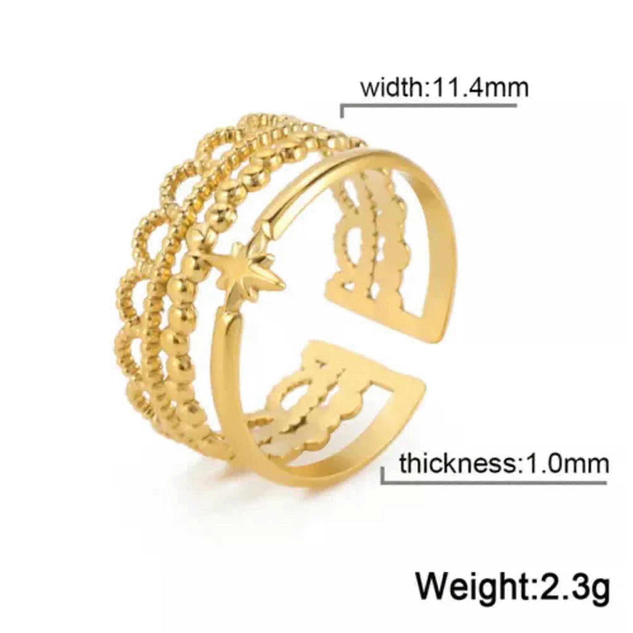 RSAMD Boho Moon Star Sun Open Rings for Women Stainless Steel Adjustable Layered Ring-resizable-C Gold Color