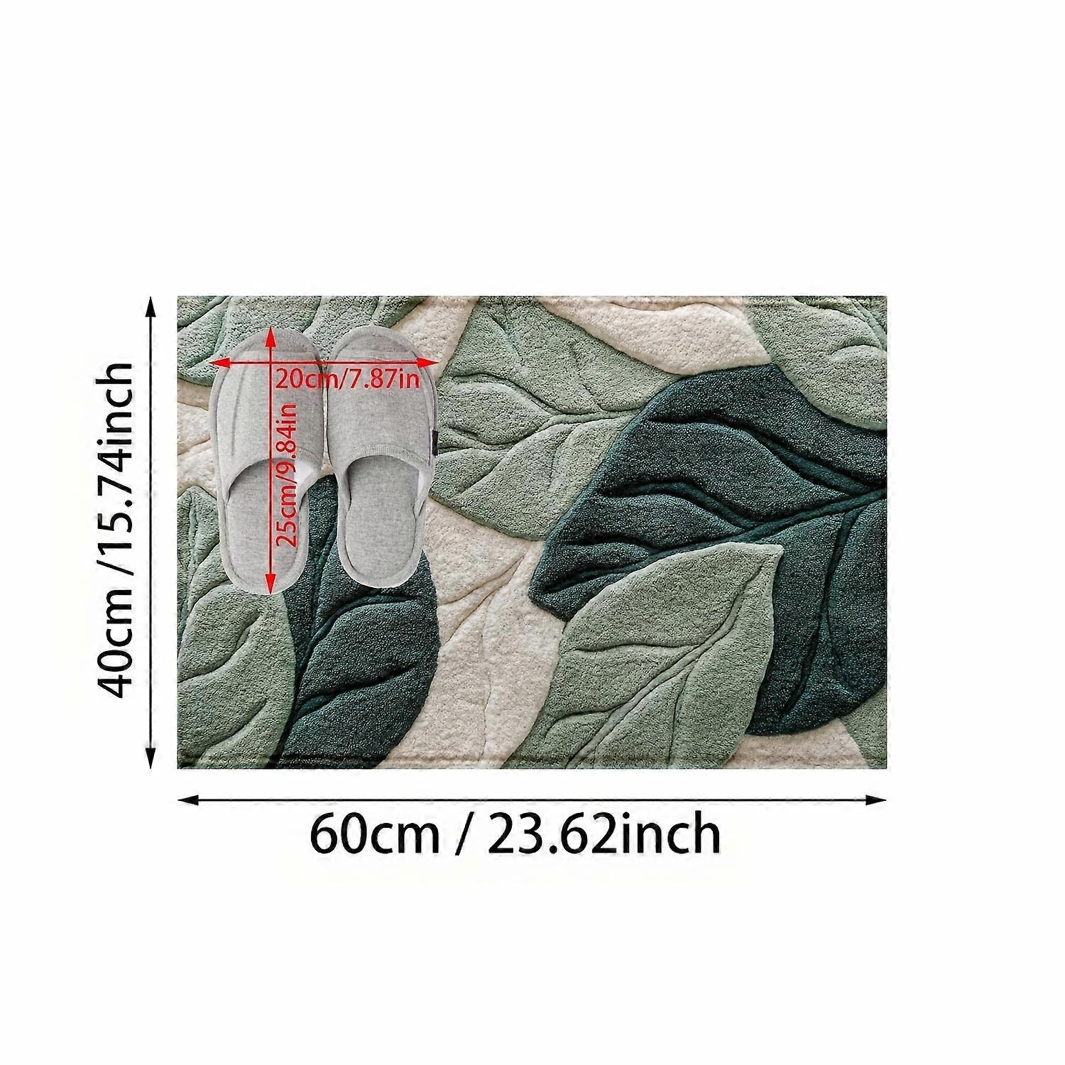 Green Leaf Pattern Plush Microfiber Bath Mat - Anti Slip, Quick Drying Moisture Absorbing, Ideal Choice For Home Decoration And