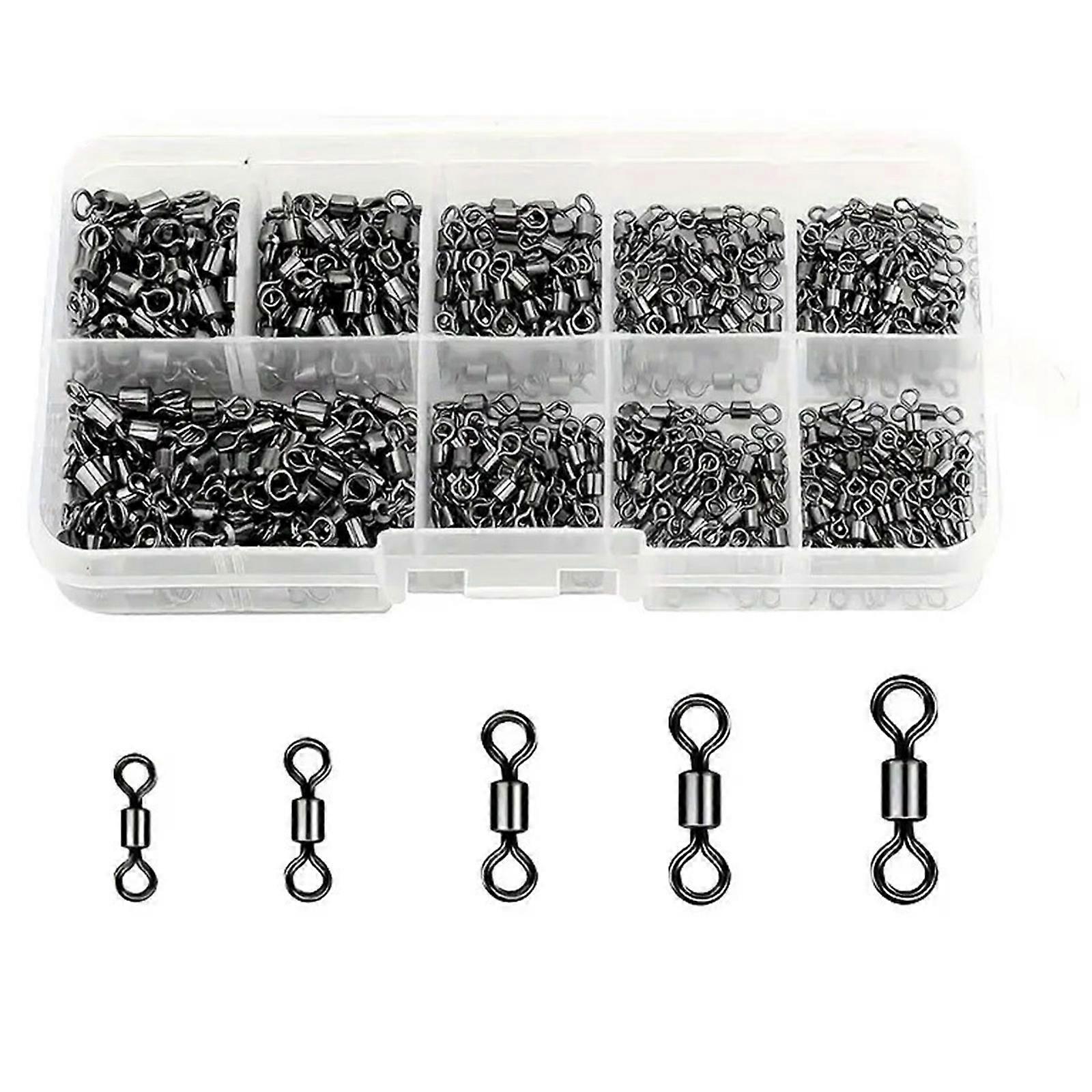 210pcs Stainless Steel Fishing Swivels Assortment 5 Size High Strengths Fishing Swivels for Casting Reels Multicolor