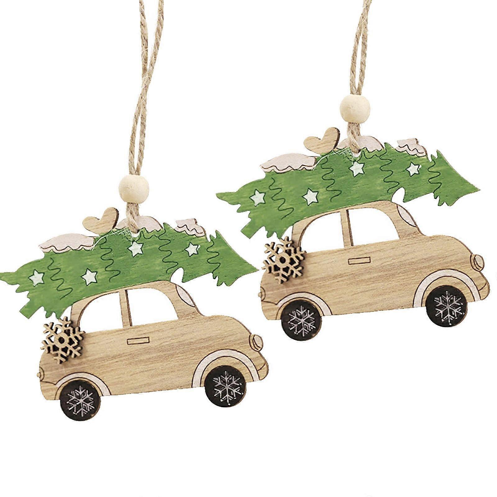 Christmas Hanging Ornaments 2Pc Wooden Hanging Christmas Tree Cabin Elk Car Ornament Xmas Party Home Decor