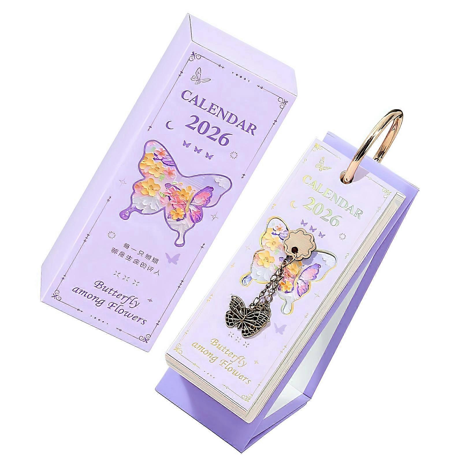 2026 Art Calendar Oil Painting Illustrations Calendar with Metal Butterfly Charm for Daily Scheduling Holiday Decoration Multicolor