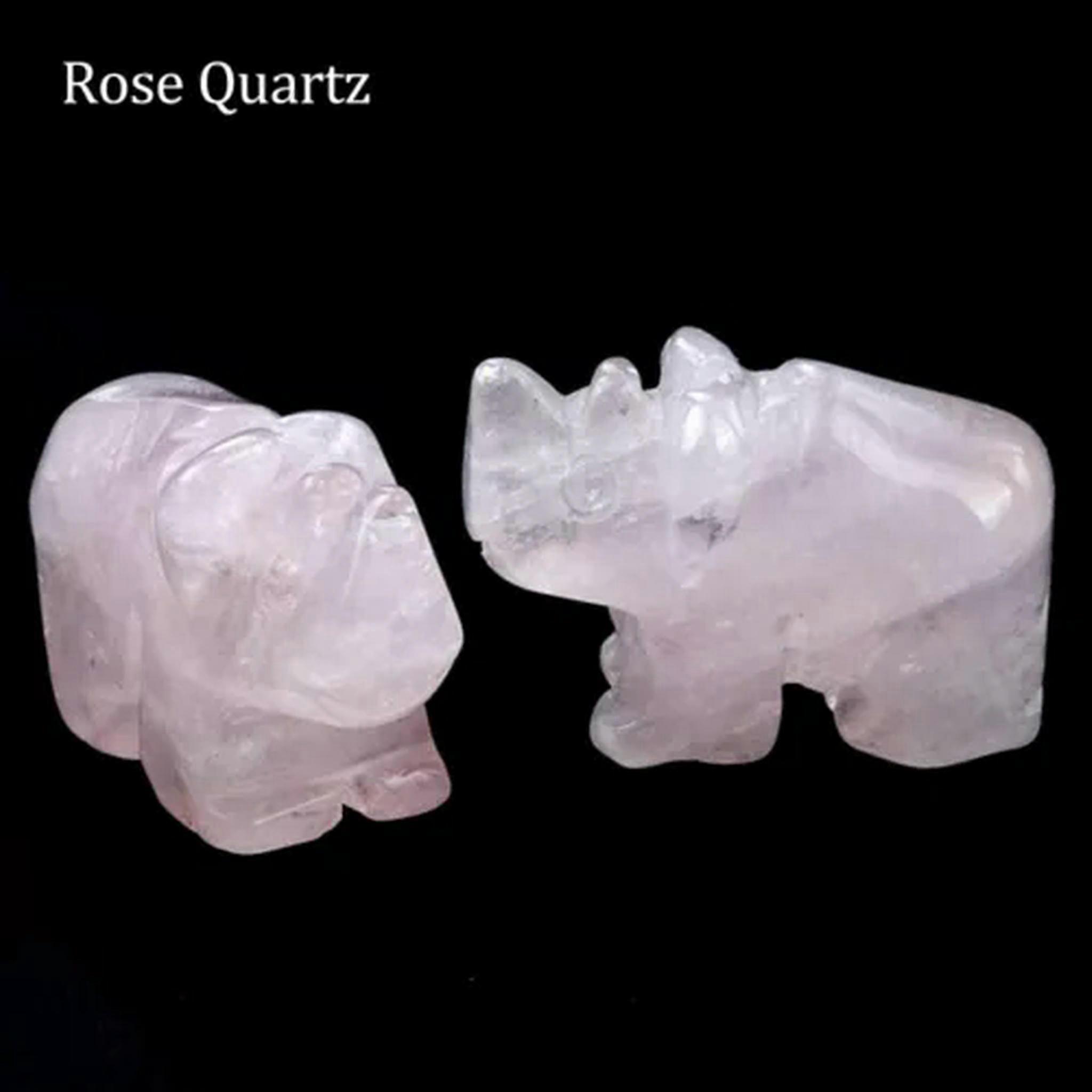 RSAMD 1" Natural Stone Rhino Statue Crystal Carved Rhinoceros Figurine Home Decor Gift-1PC (Random Pick)-Rose Quartz