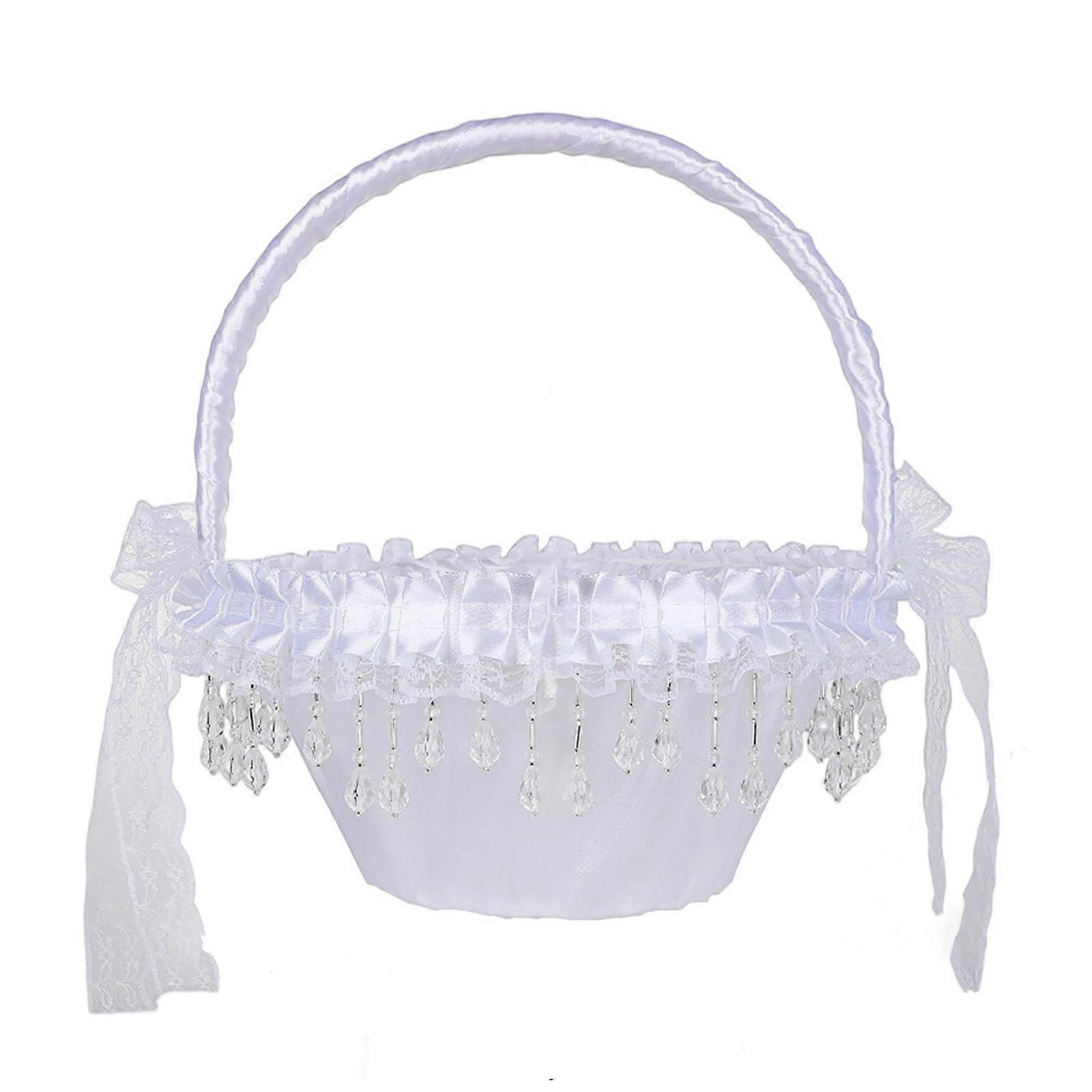 Portable White Lace Trim Basket For Girls Elegant Floral Container with Handle Wedding Party Decoration Multicolor