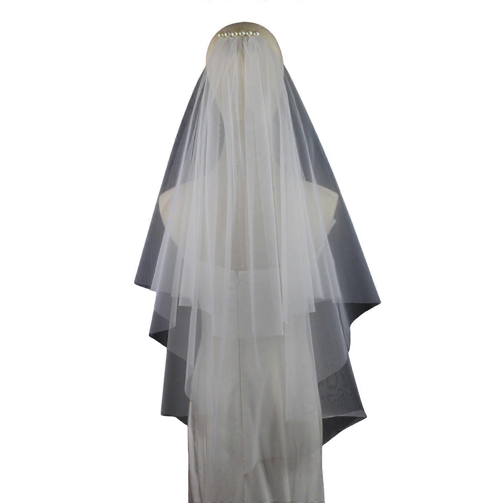 Stylish Bride's White Veil with Delicate Artificial Pearls Double Layer Bridal Veil for Hen Party and Bridal Celebrations Multicolor