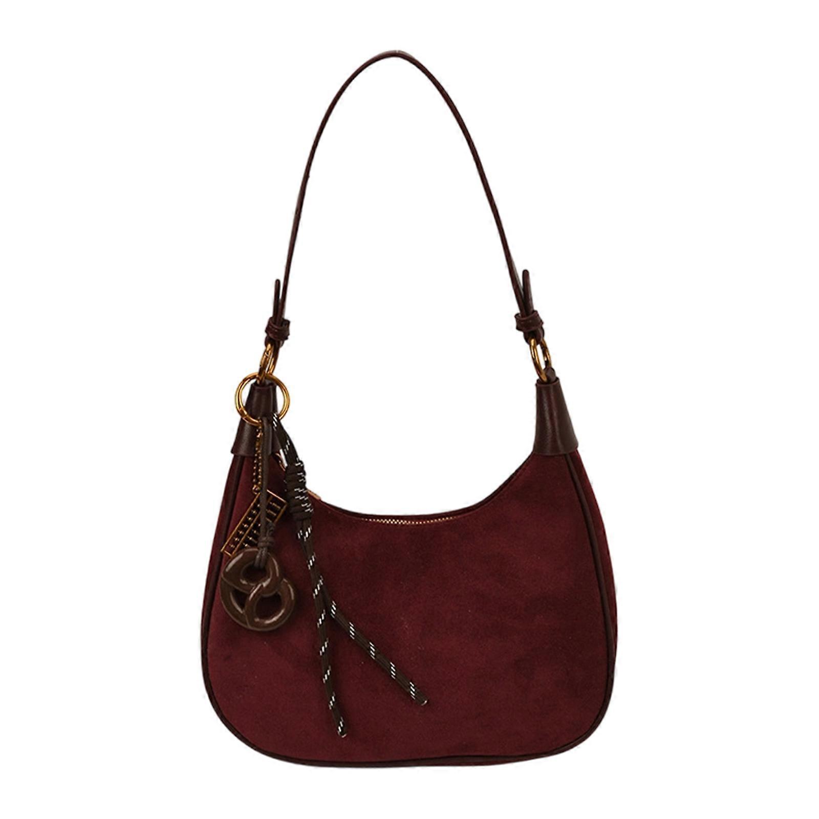 Retro Suedes Handbag Multipurpose Carry Option Spacious Compartment Modern Shoulder Bag For Women Casual Outfits Burgundy