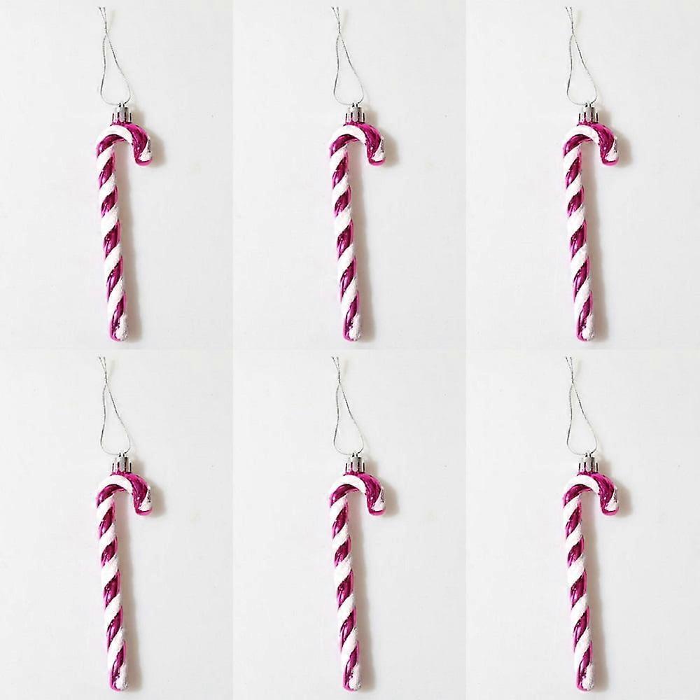 6 Pack of Glitter Christmas Plastic Candy Cane Christmas Tree Hanging Ornaments for Holiday Party Decoration Favors