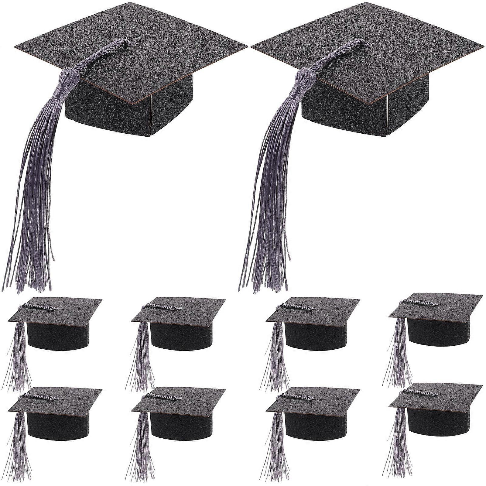 Eease 10 Mini Grad Hat Wine Glass Covers for Bachelor Graduation - Black