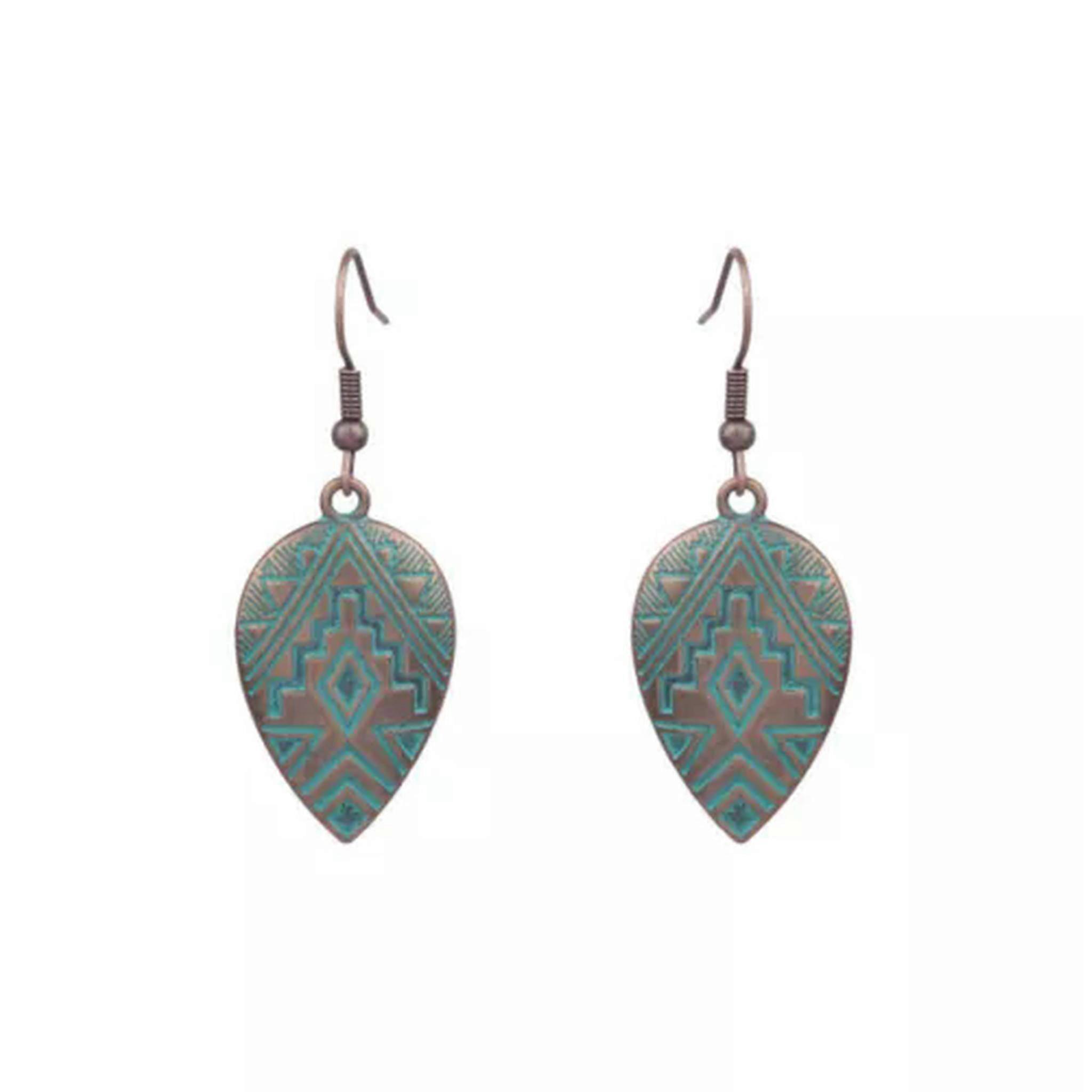RSAMD Fashion Women Vintage Bohemian Earrings Bronze Engraved Striped Triangle Jewelry-0777