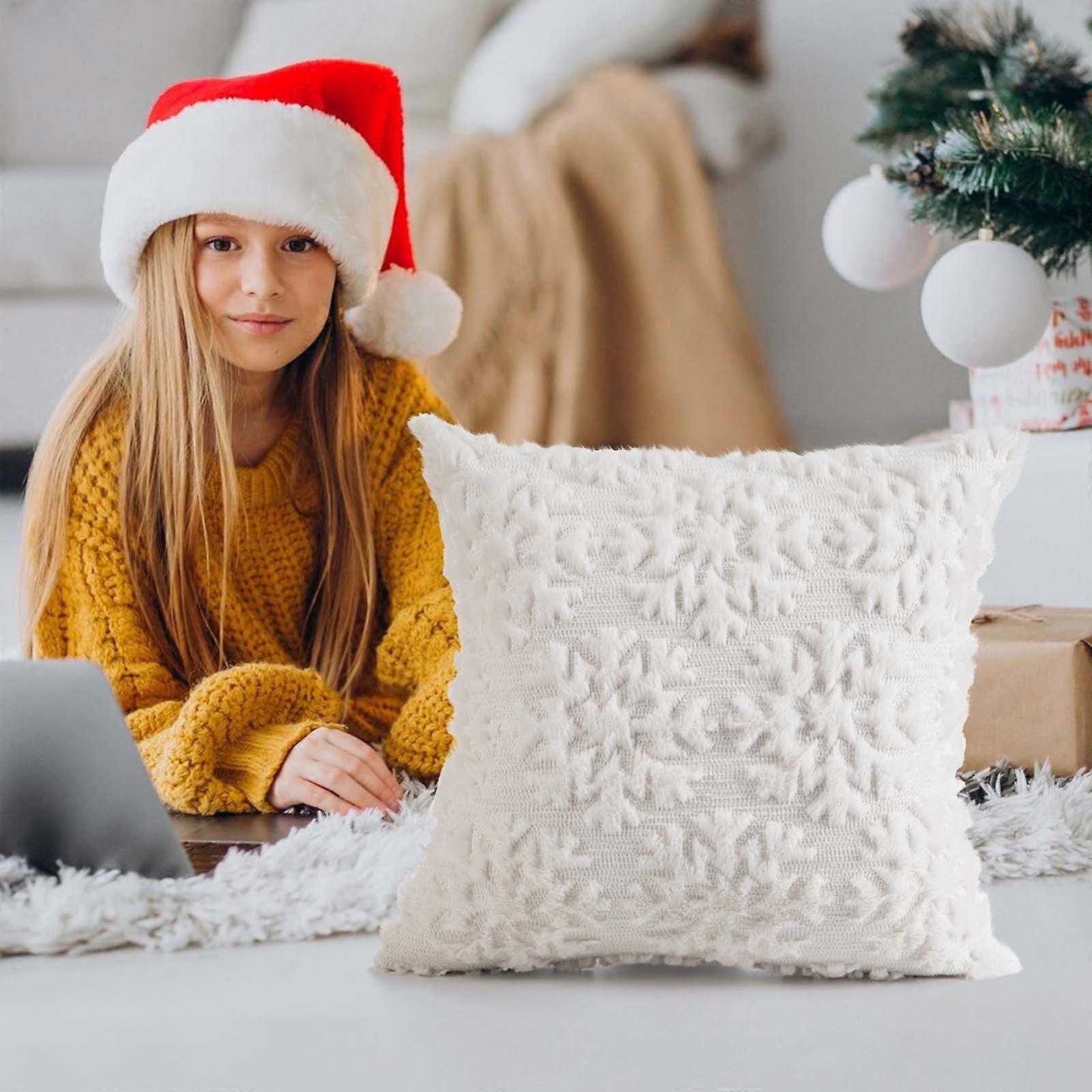 Daiosportswear Soft Faux Fur Snowflake Christmas Pillow Covers 18x18 inch, Holiday Decor for Couch