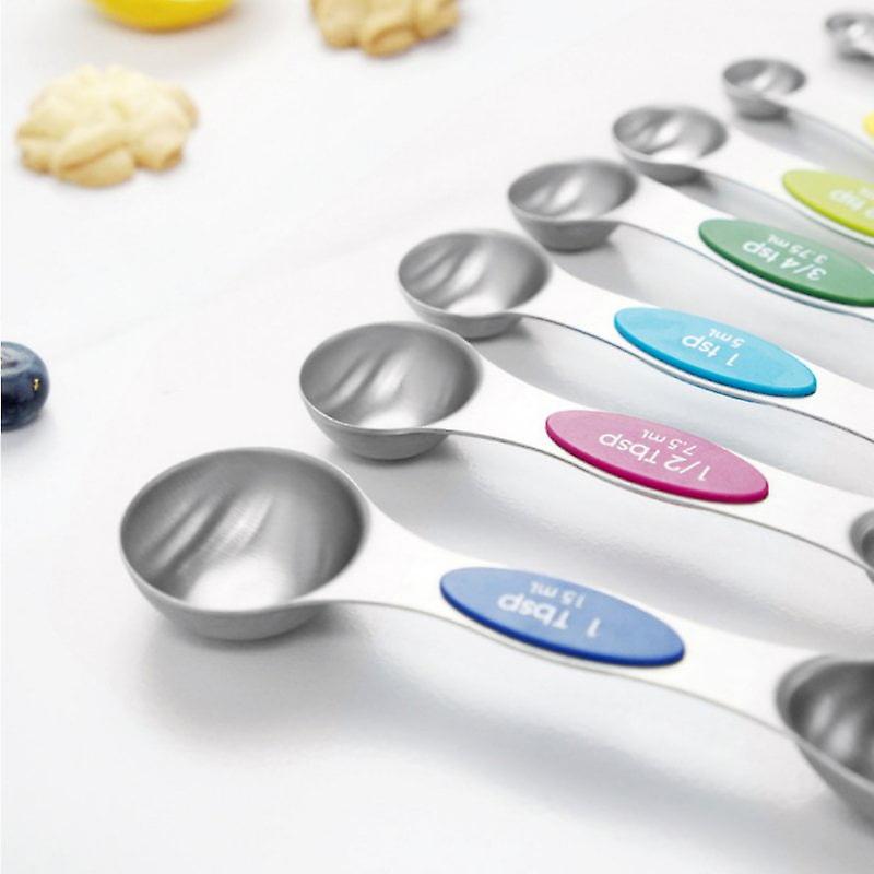 Magnetic Measuring Spoons Set of 8, Stainless Steel Dual-Sided, Stackable with Leveler, Fits Spice Jars, for Dry & Liquid (Multicolor)