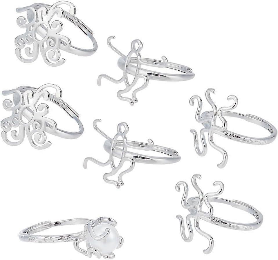6Pcs 3 Style Adjustable Brass Ring Components, Flower Filigree Settings, Platinum Plated, 1.5mm, US 7-7.5 (17.3-17.7mm), 2 Pcs/Style