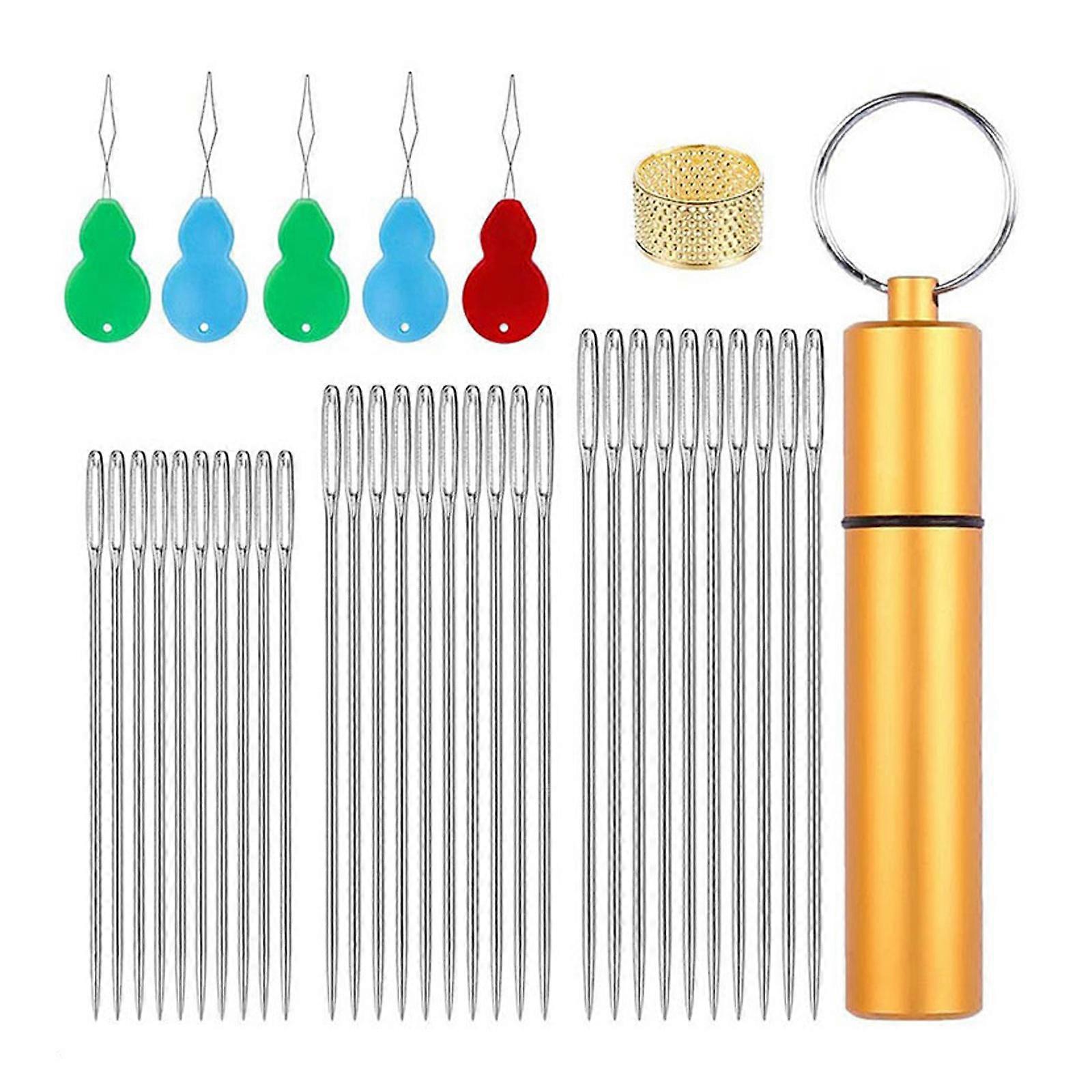 30Pcs Large Eye Stitching Needle Set with Sewing Threader And Metal Thimble For Clothing Repair Fabric Tailoring Project Multicolor