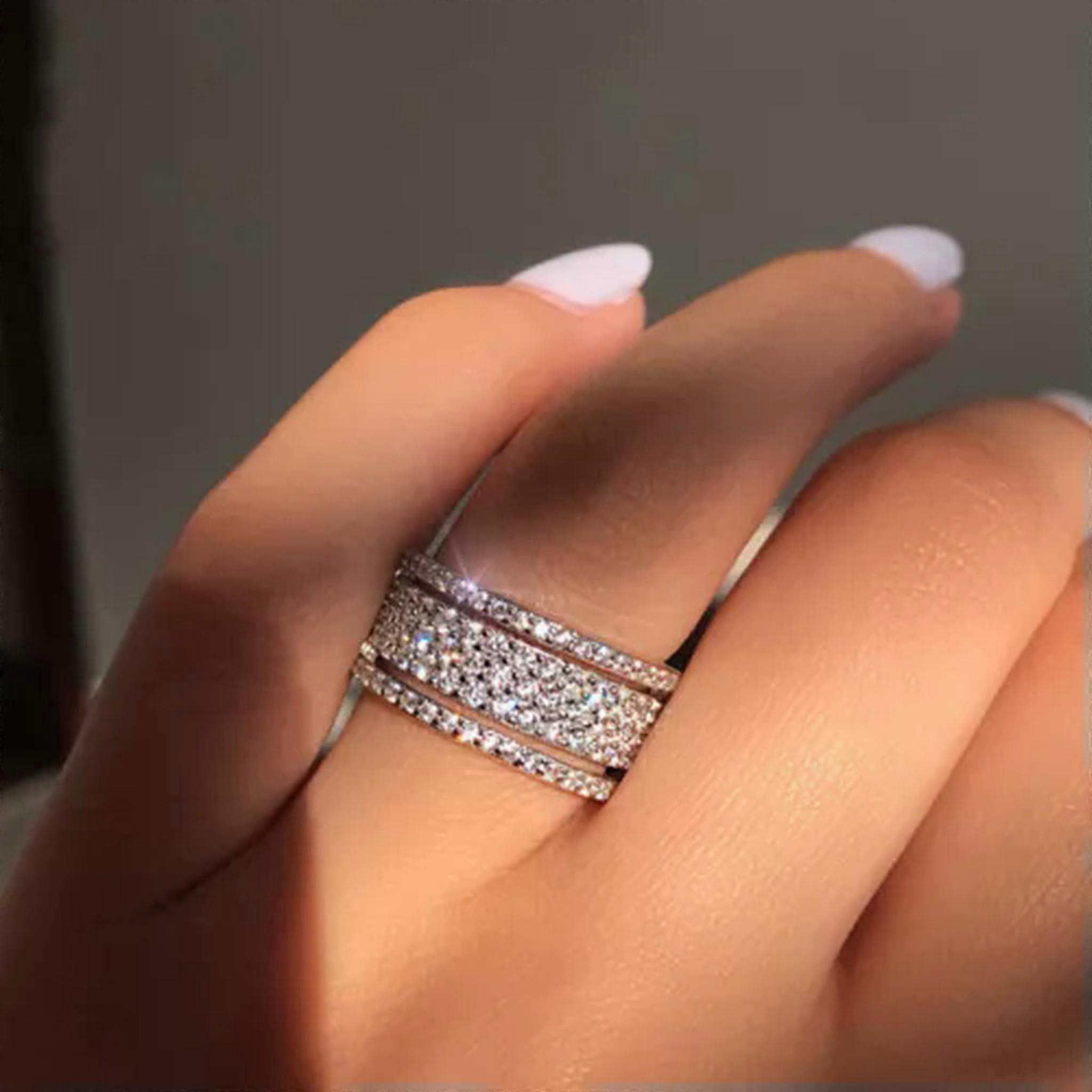 RSAMD Gorgeous Jewelry Alloy Crystal Rings White Wedding Rings Size 5-10-6