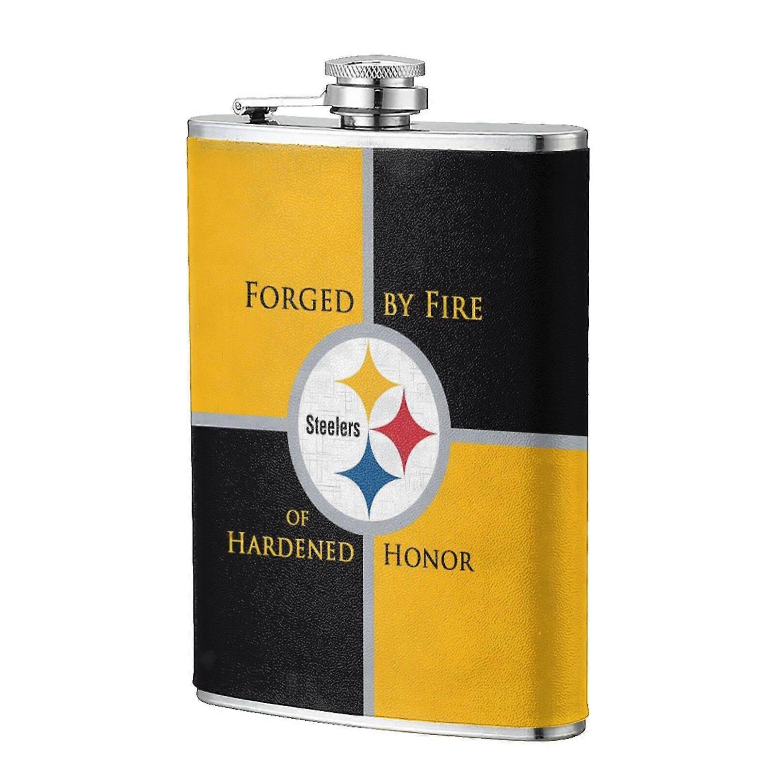 Steelers Flagon Hip Flask 8oz, Food-Grade Stainless Steel Leather Pocket Flask, Compatible with Outdoor Sports, Camping, Wedding Groomsman Gift