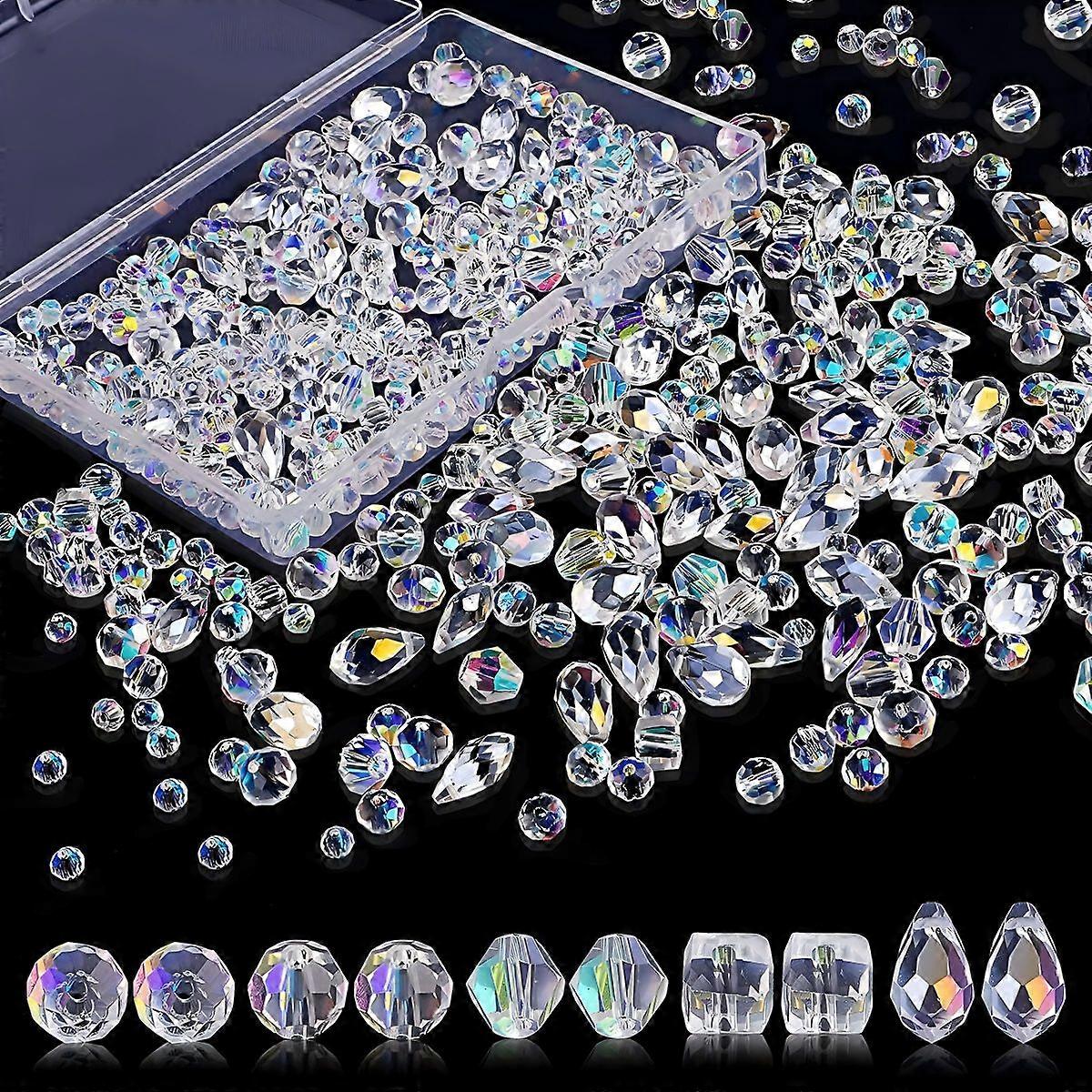 600pcs Crystal Glass Beads Mixed Crystal Glass Beads Various Crystal Beads Bulk Glass Beads For DIY