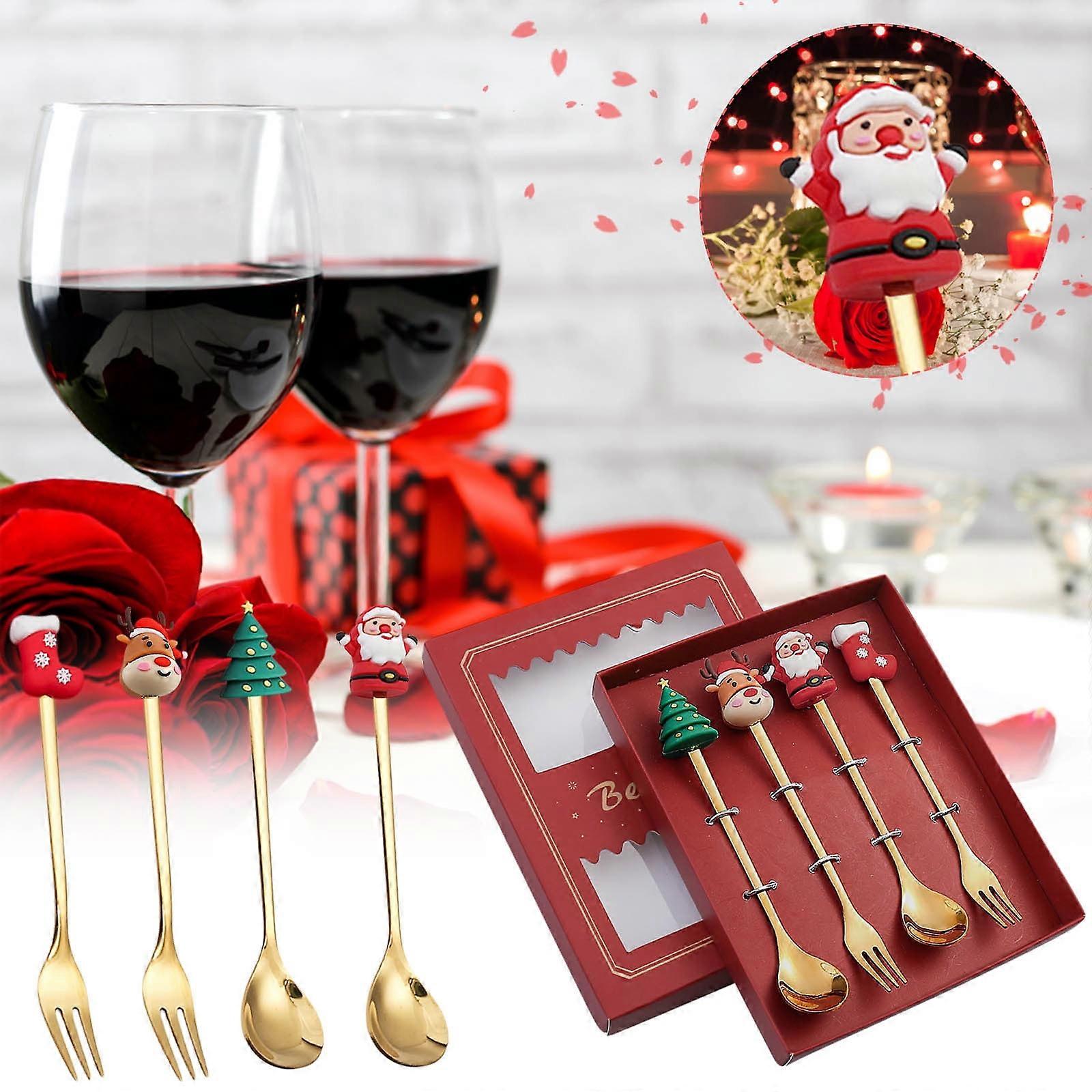 Cyber Monday Deals 2024: Viflosae Christmas Decorations Indoor - 4PCS Stainless Steel Spoon Set, Compatible with Xmas Tableware Gifts