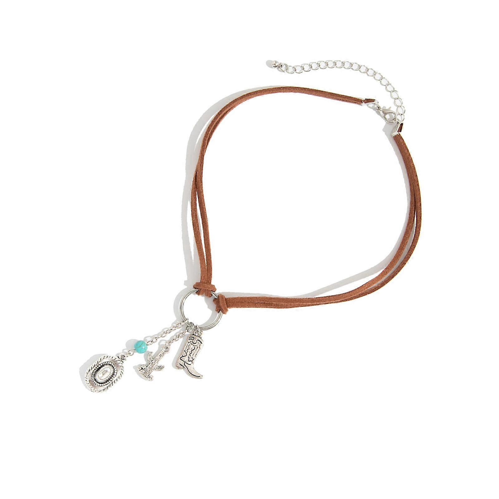 Cowboy Pendant Alloy Necklace Featuring Turquoise Imitation Detail Western Theme Necklace Suitable for Daily Accessories Multicolor