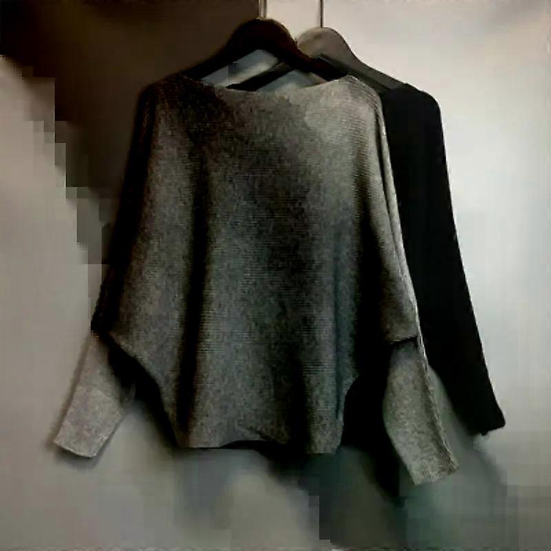 New Women s One line Neck Bat Sweater Knitted Pullover Loose and Simple Commuting OL Style Long Sleeve Solid Color