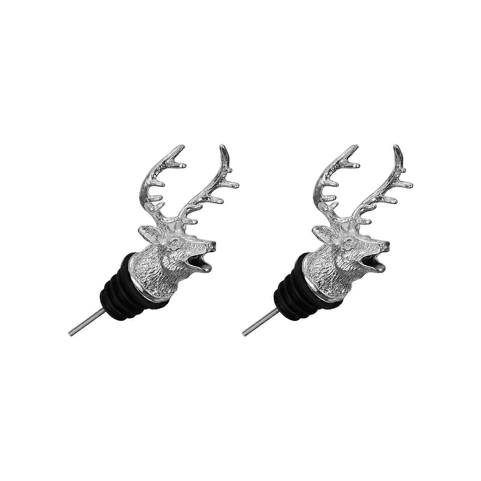 2 Pack Steel Deer Head Liquor Pourers with Leak Proof Stopper Wine Bottles Pour Spouts For Oil Vinegar Kitchen Bar Tool Silver