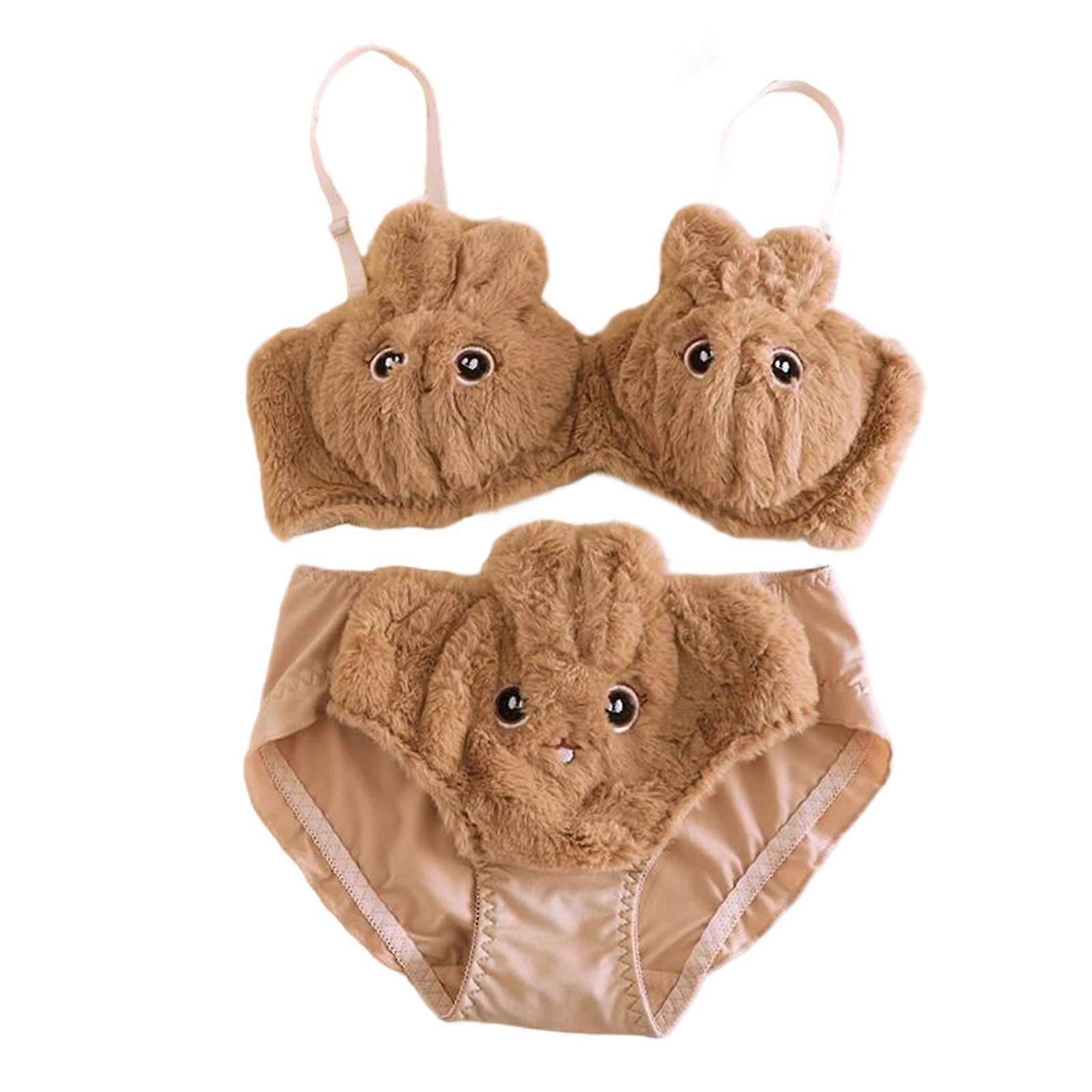 Breathable Nylon Underwear Set Thickened Embroidery Cats Pattern Seamlessly Construction Wear Christmas Gift brown suit 38 85AB