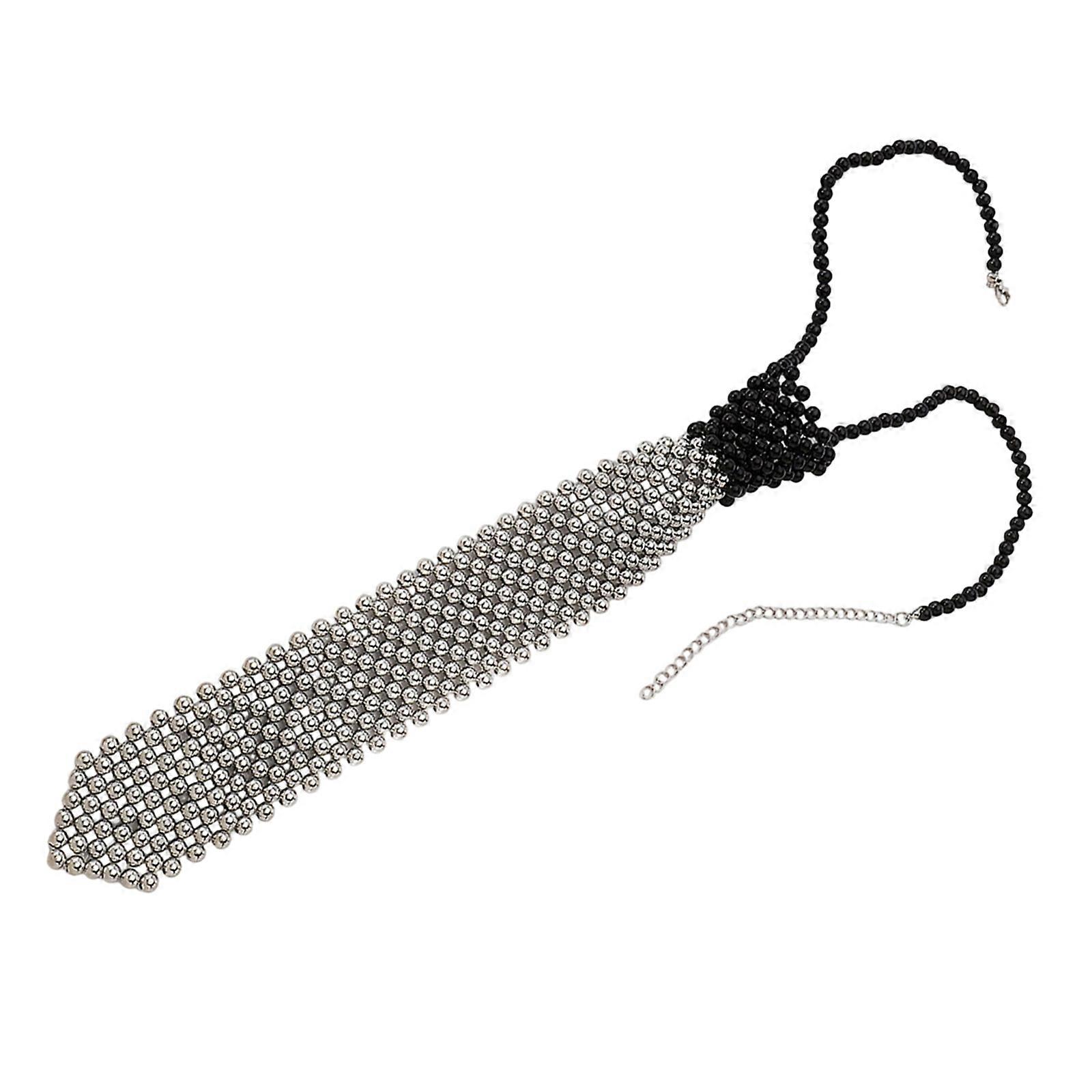 Adjustable Pearls Necklace Tie Luxury Beaded Choker for Women's Formal and Casual Occasion black silver