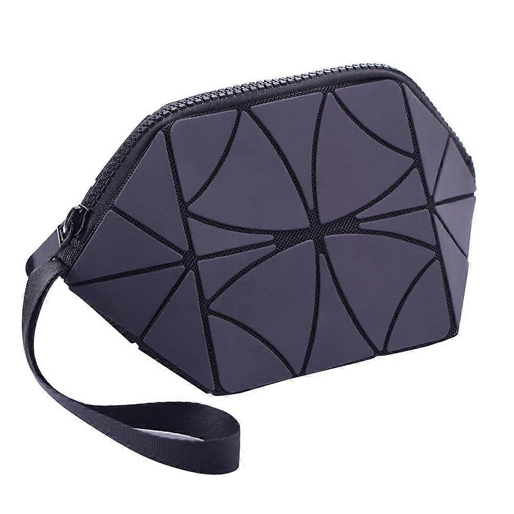 Bolsa organizadora de maquillaje, bolsa de almacenamiento plegable con rayas geométricas brillantes de viaje portátil para cosméticos