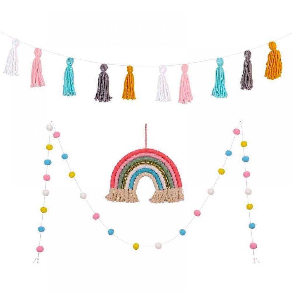 3Pack Tassel Garland Boho Cotton Pastel Banner Colorful Birthday Party Decor Wall Hangings for Bedroom, Nursery,Girls Room Decor