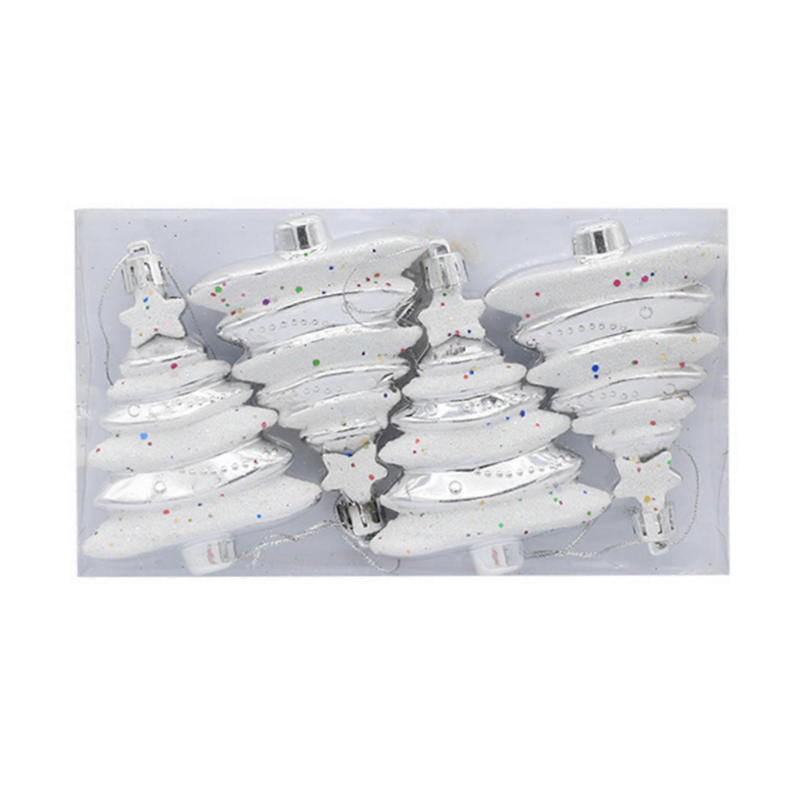 4 Pack Christmas Tree Shaped Pendants - Silvery Plastic Replacement Balls for Chandelier, Compatible with Christmas Decor