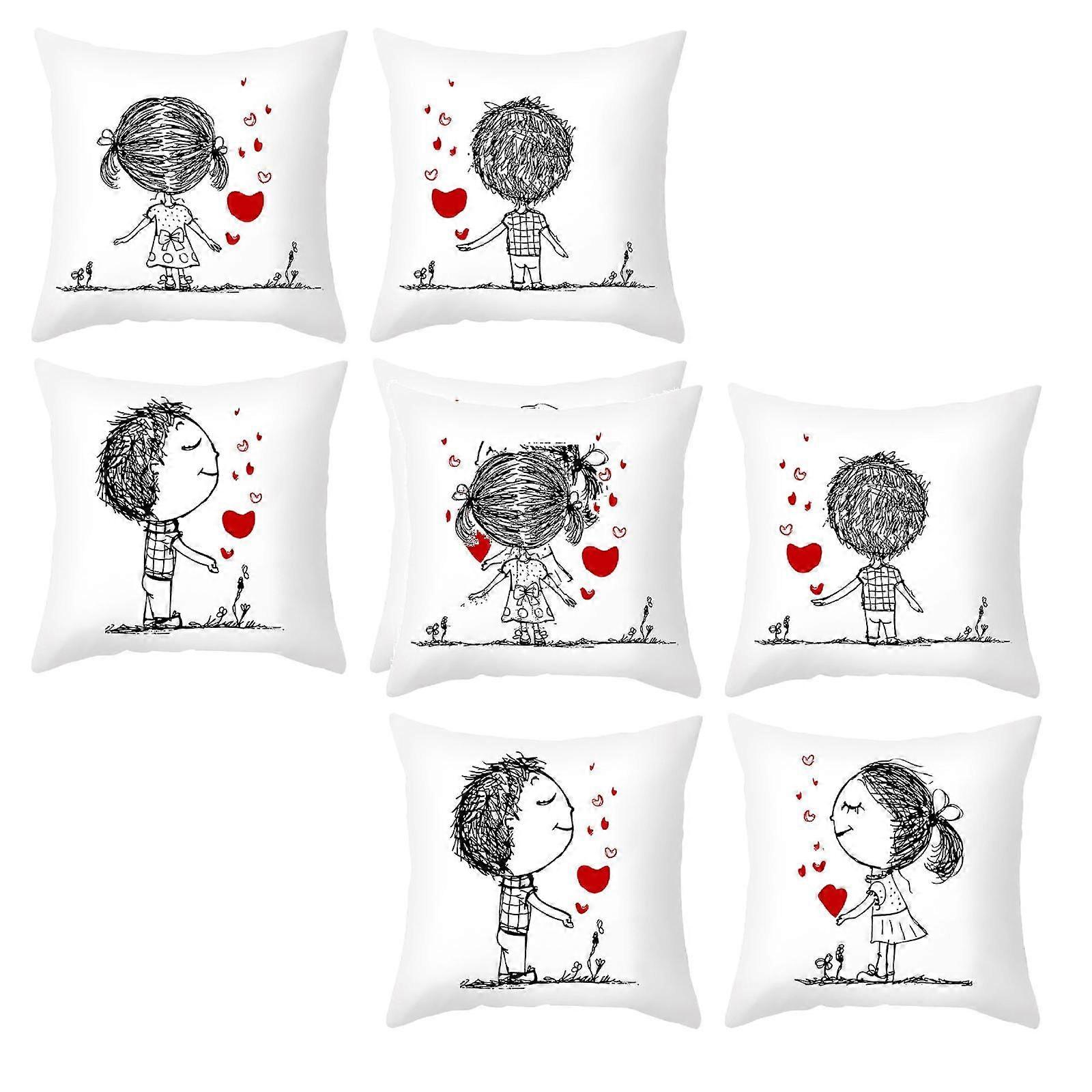Xubond Home Valentine's Day Pillowcase Peach Skin Printing Couple Love Sketch Cushion Pillow Case Multi-color Valentine'S Day Fabric