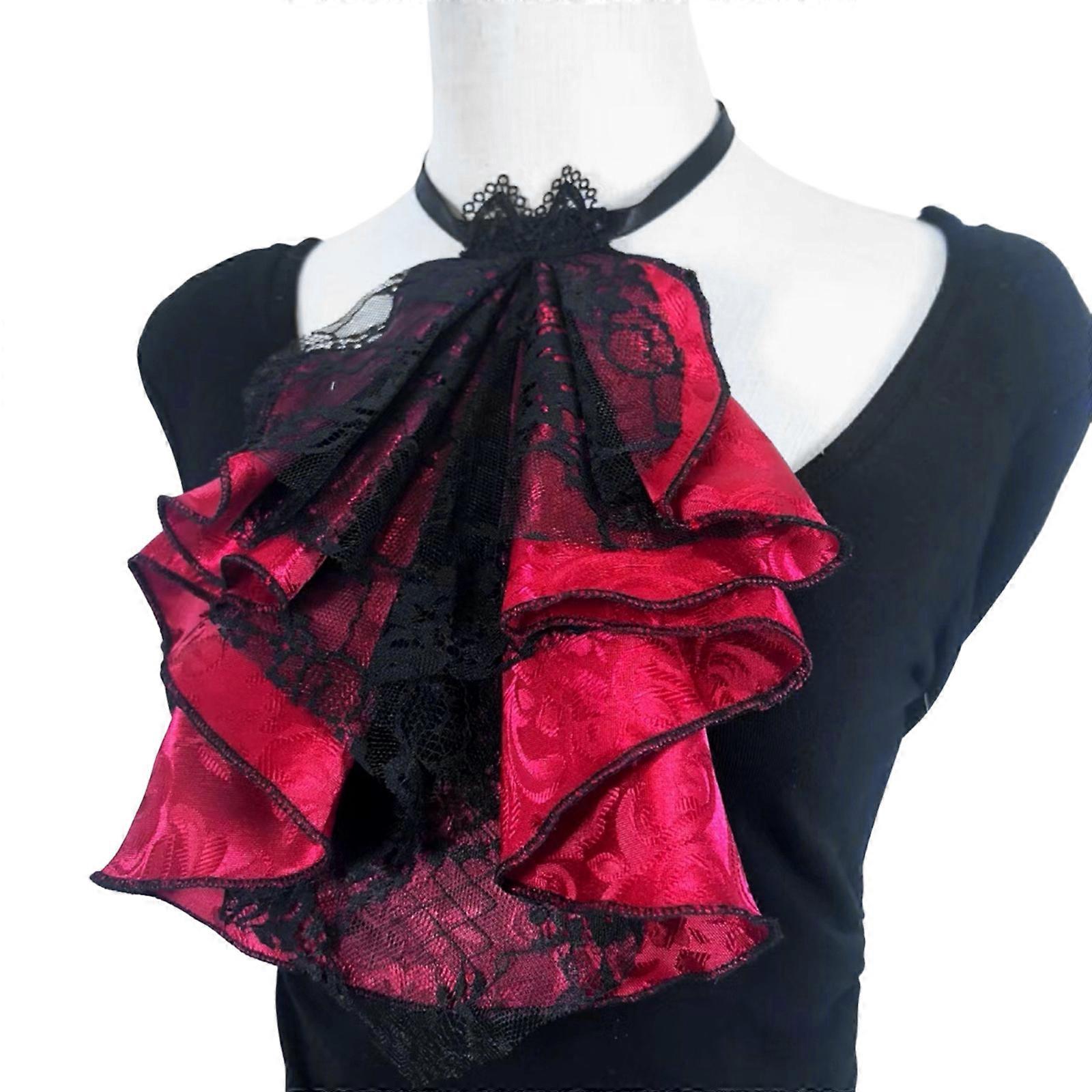 Victorian Decorative Collar for Women Courtstyles Jabot Collar Detachable Neckpiece for Theme Event Party Accessories wine red