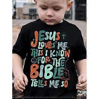 Boys' "Jesus Loves Me This I Know" Bible Verse T-Shirt - Cute & Casual Short Sleeve, 100% Cotton, Colorful Letter Print, All-Season Wear