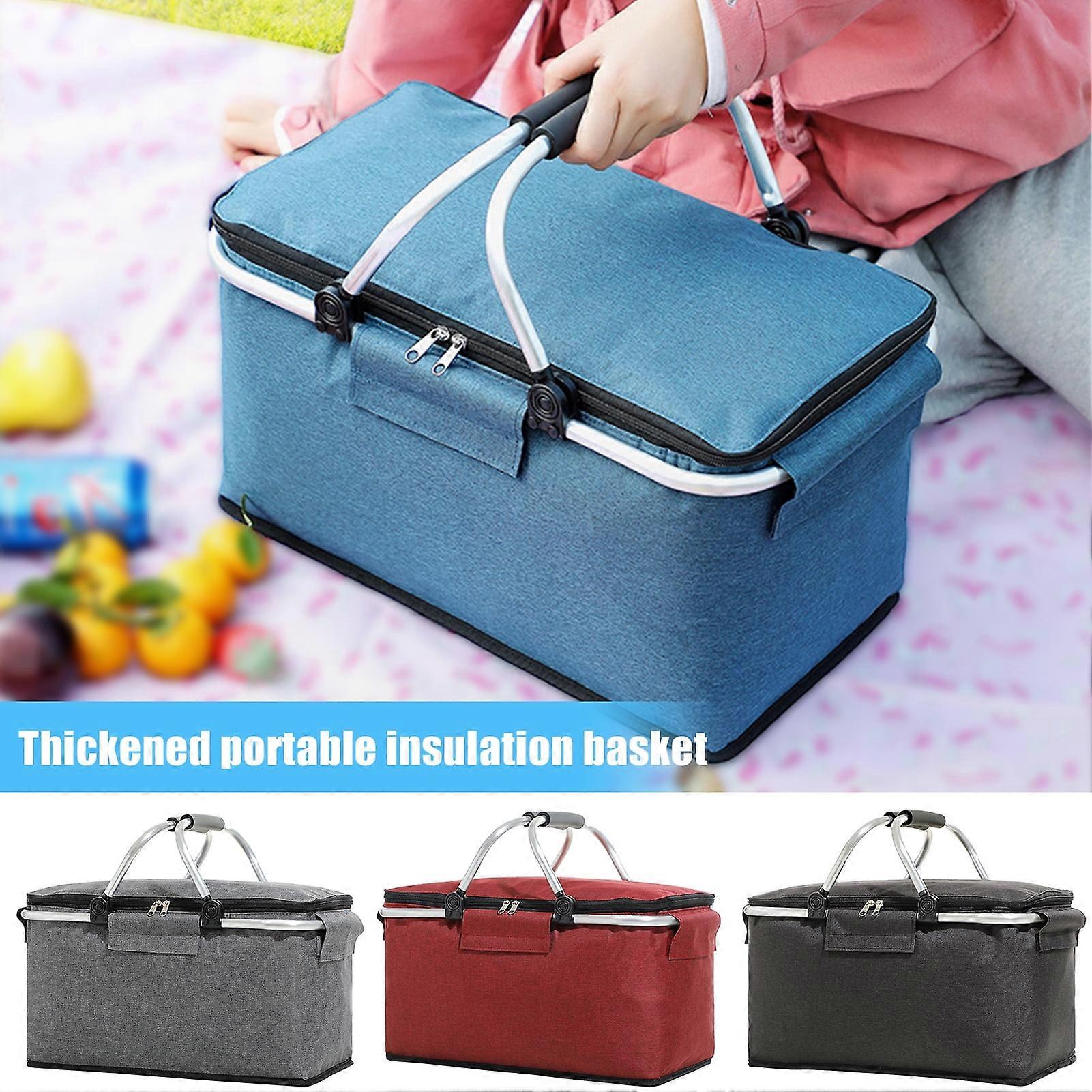 SUSUchens 18L Insulated Picnic Basket with Handle Large Capacity Zipper Closure Leak-Proof Foldable Storage Basket Cooler Camping Supplies Black