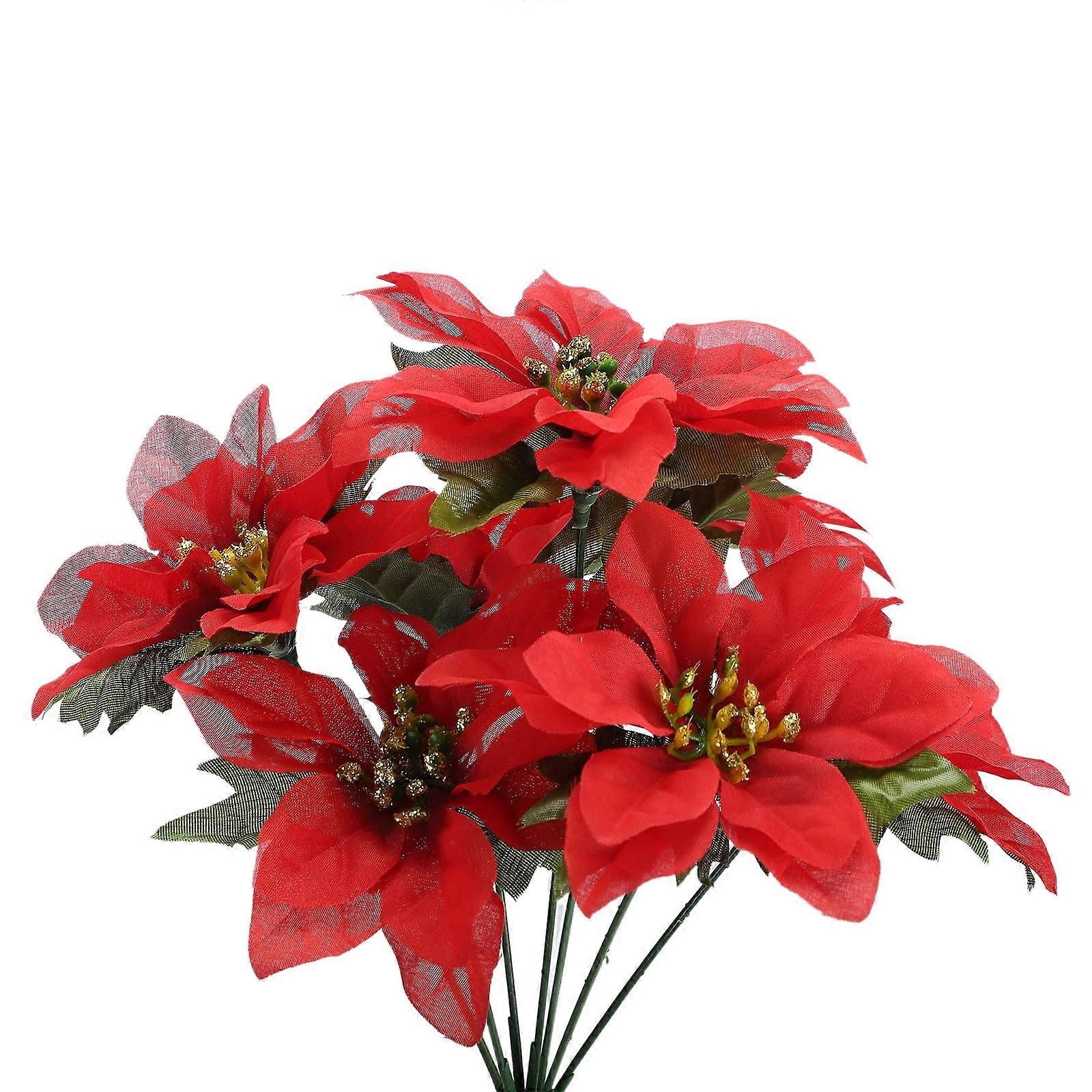 10 pcs 7 forks Artificial Poinsettia Bushes Silk Fabric Poinsettia Bushes Plants for Indoor Outdoor Xmas Christmas Tree Ornament Home Red