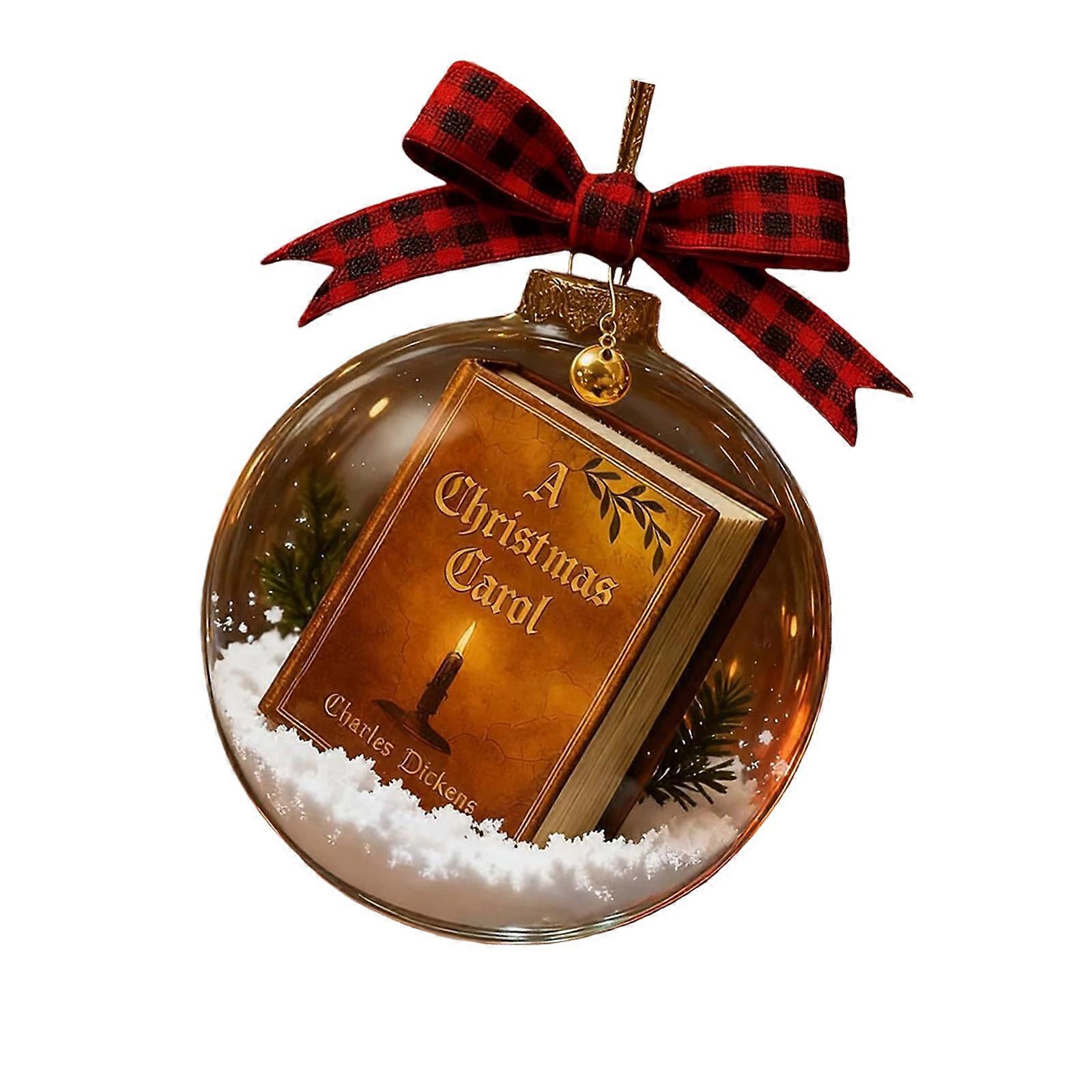 Mini Book Shape Christmas Carol Ornament Clear Acrylic Hanging Decors For Holiday Tree Home Office Festival Parties Supplies Yellow