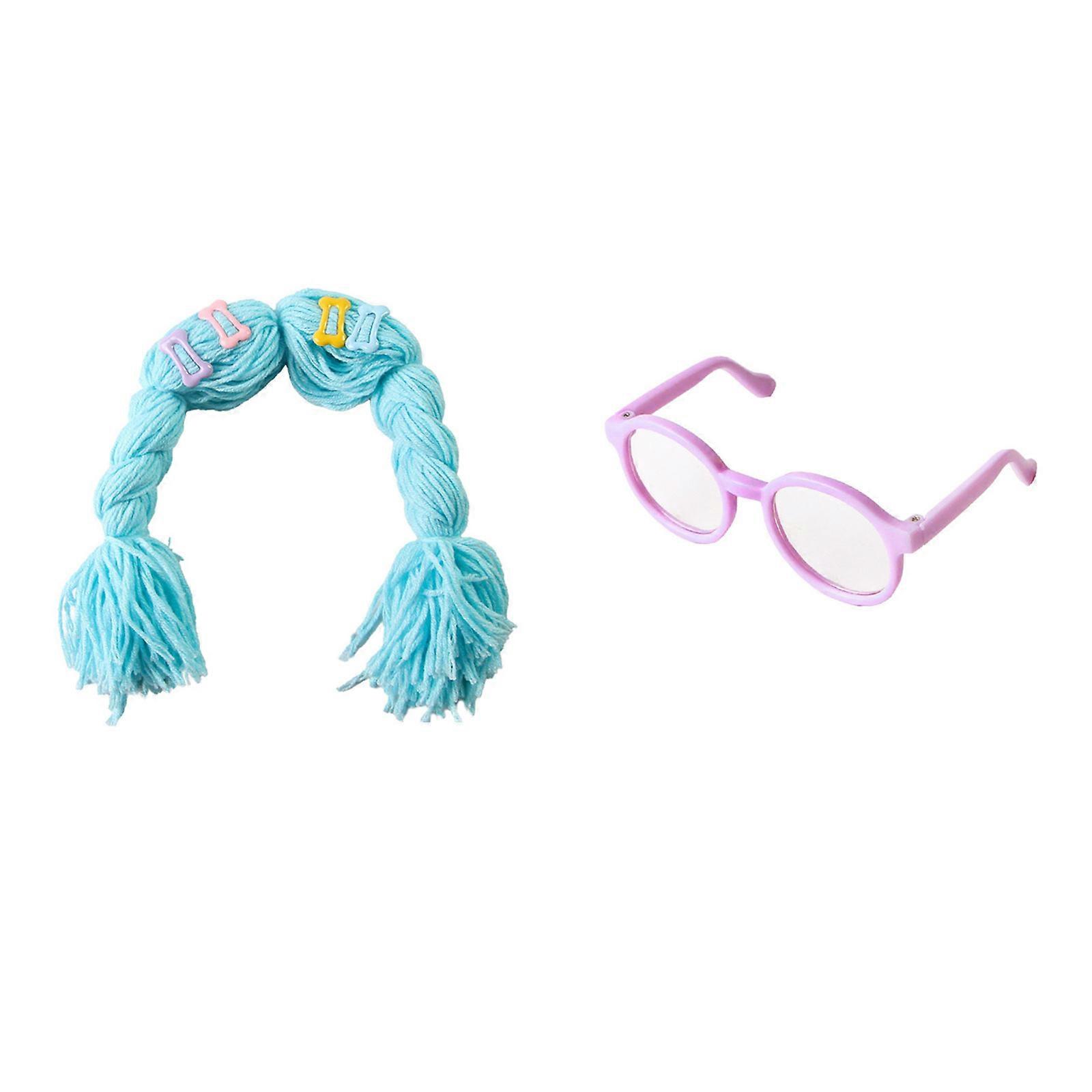 2pcs Funny Pet Wigs And Glasses Set Bright Color For Cats Dogs Party Costume Photography Props Multicolor
