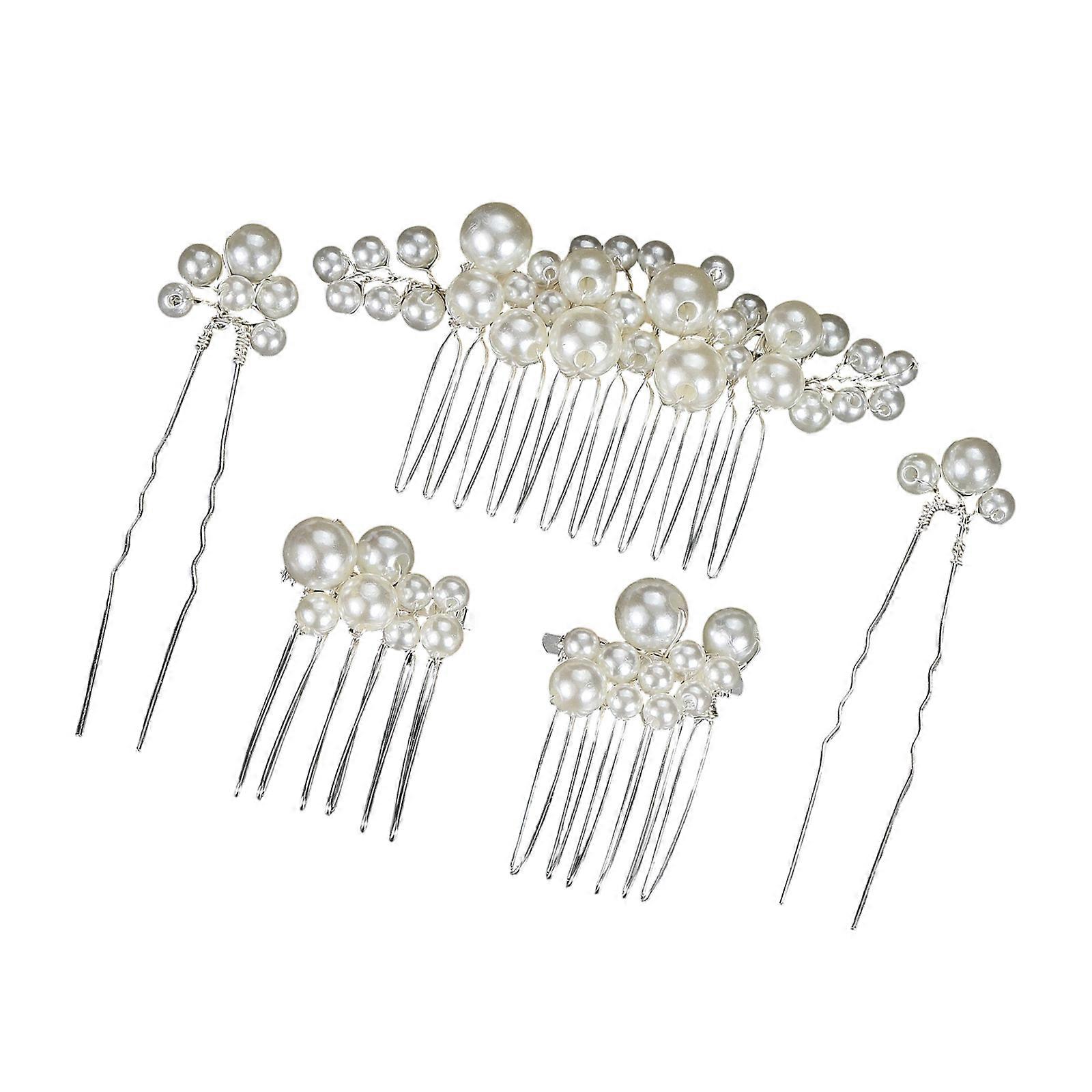 Luxurious Rhinestones Wedding Hair Jewelry Set 5Pcs Bridal Hair Comb Bead Bridal Hairpins For Bride Bridesmaids Set 2 silver