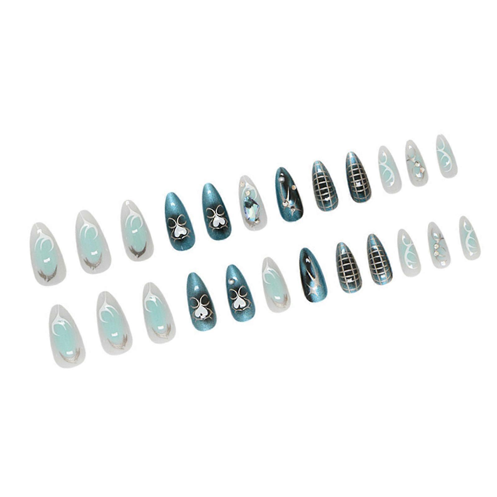 Christmas Artificial Nail Medium Almond Press On Nail Glossy False Nail Acrylic Stick on Nail with Rhinestones Designs Multicolor