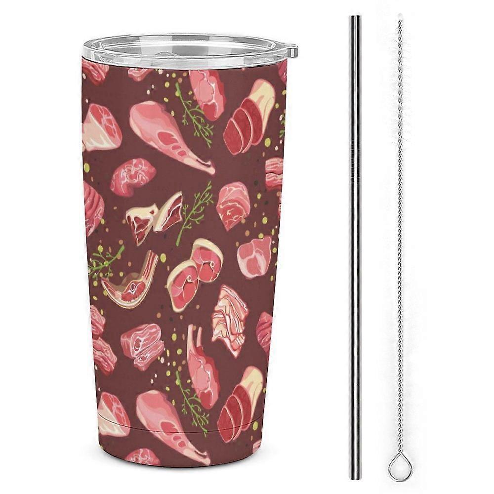Delicious Steak Pattern Stainless Steel Tumbler with Lid 20 Oz Travel Mug Portable Thermal Cup