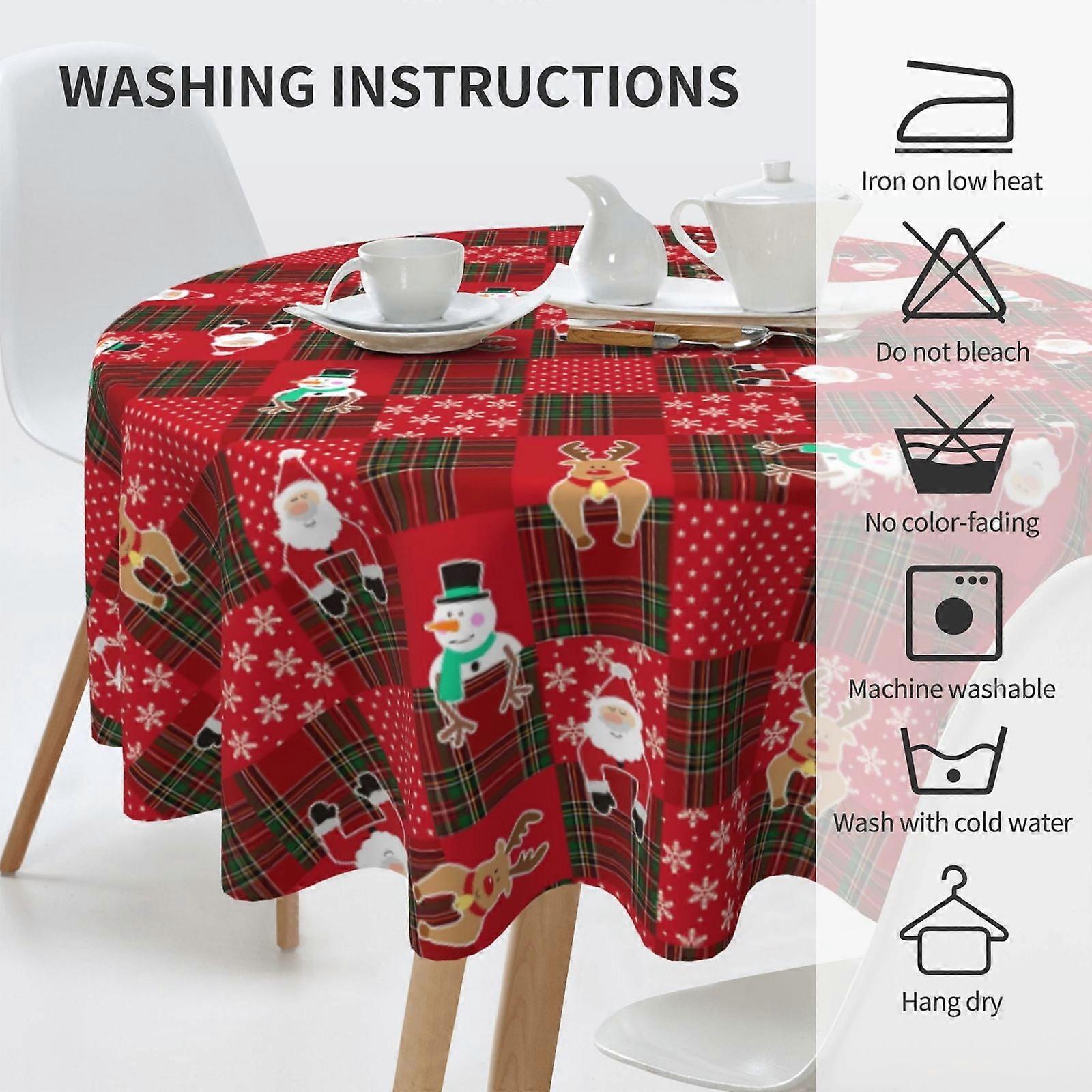 60" Round Wipeable Christmas Table Cover for Indoor & Outdoor - Compatible with Xmas Decorations