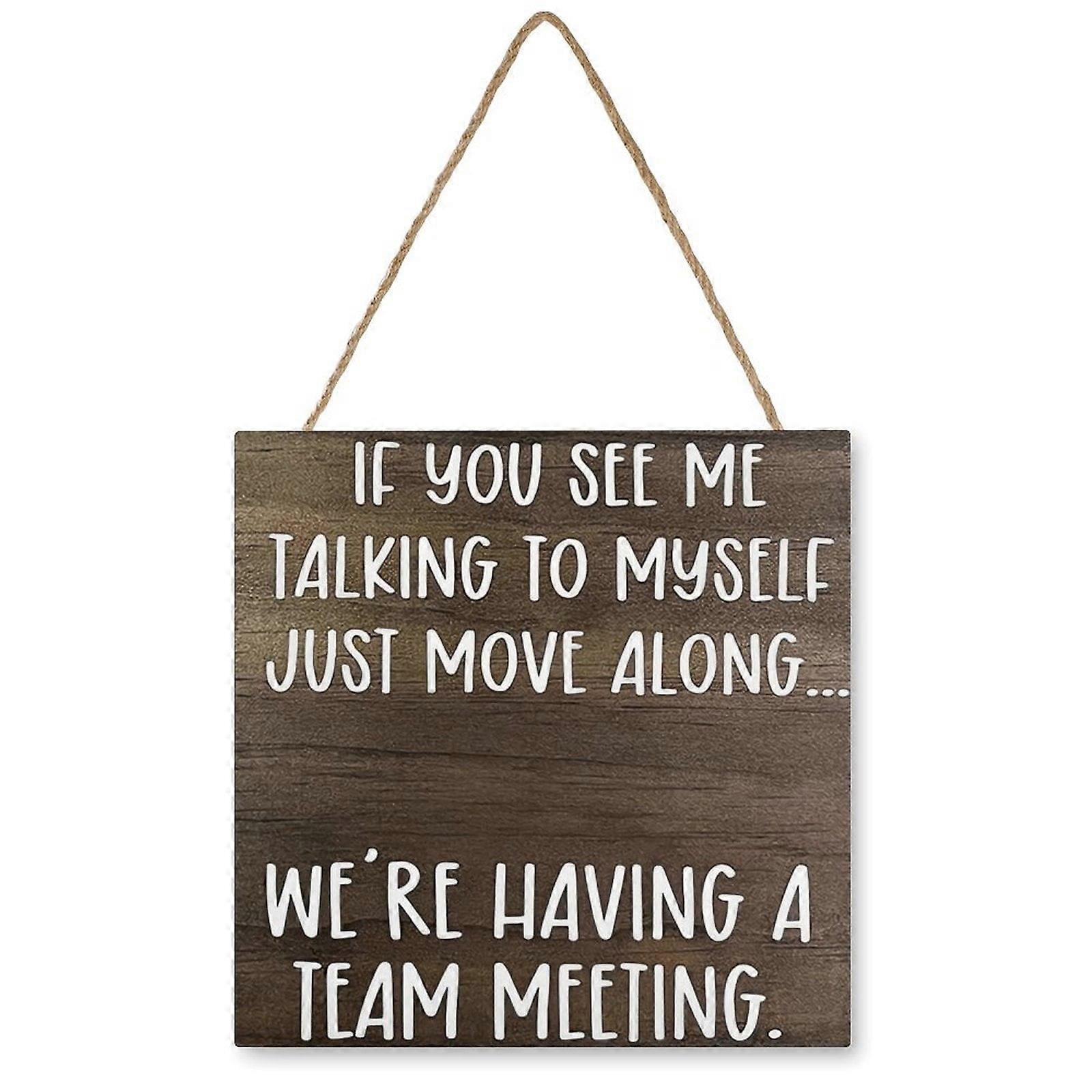 Rustic Wooden Sign: "If You See Me Talking To Myself, Go Ahead... We're Having A Team Meeting" – 12x12 inch Farmhouse Decorative Plaque