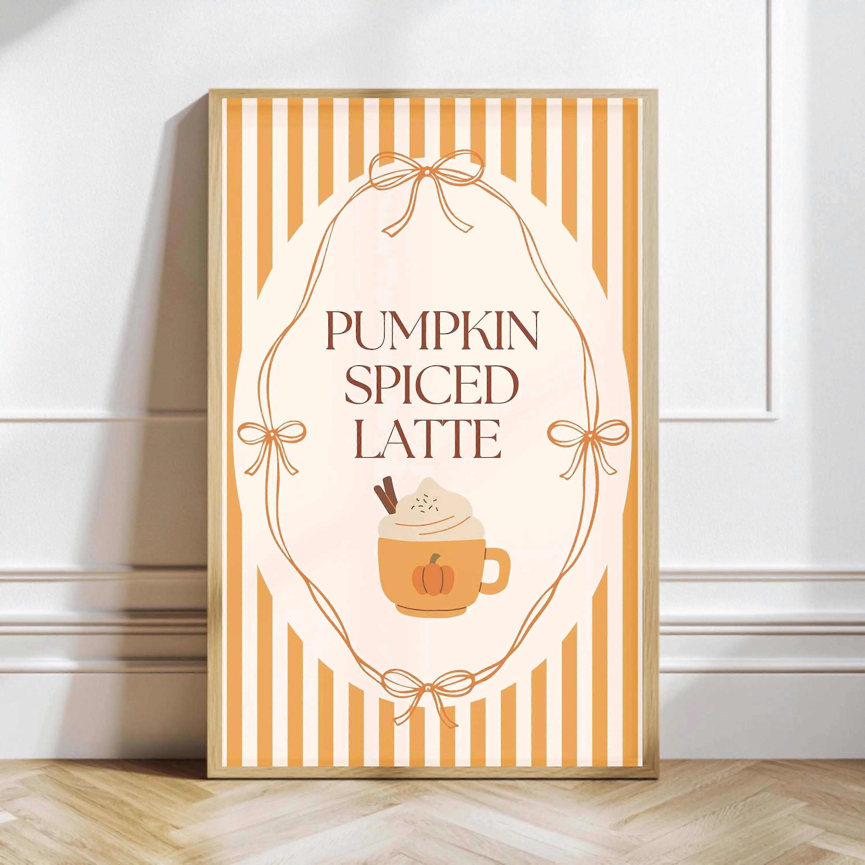 Pumpkin Spice Latte Print, Fall Coffee Wall Art, Cozy Autumn Kitchen Decor, Pumpkin Illustration, Seasonal Cafe Poster, Wall Art