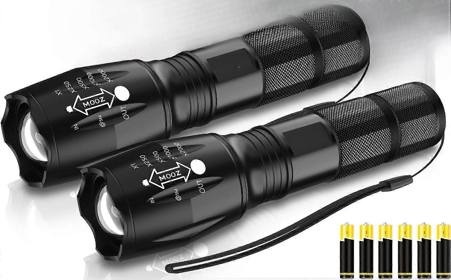 LED Flashlight 2 Pack, Bright 2000 Lumens Tactical Flashlights with 5 Modes, Waterproof Zoomable Light for Outdoor, Camping, Dorm Gifts