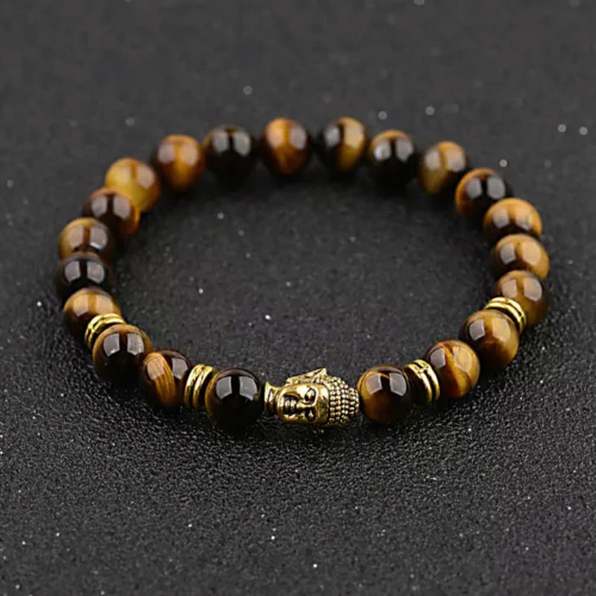 RSAMD Men 8mm Tiger Eye Beads White Turquoise Yoga Couples Bracelets Charm Jewelry-Tiger eye stone + Buddha head