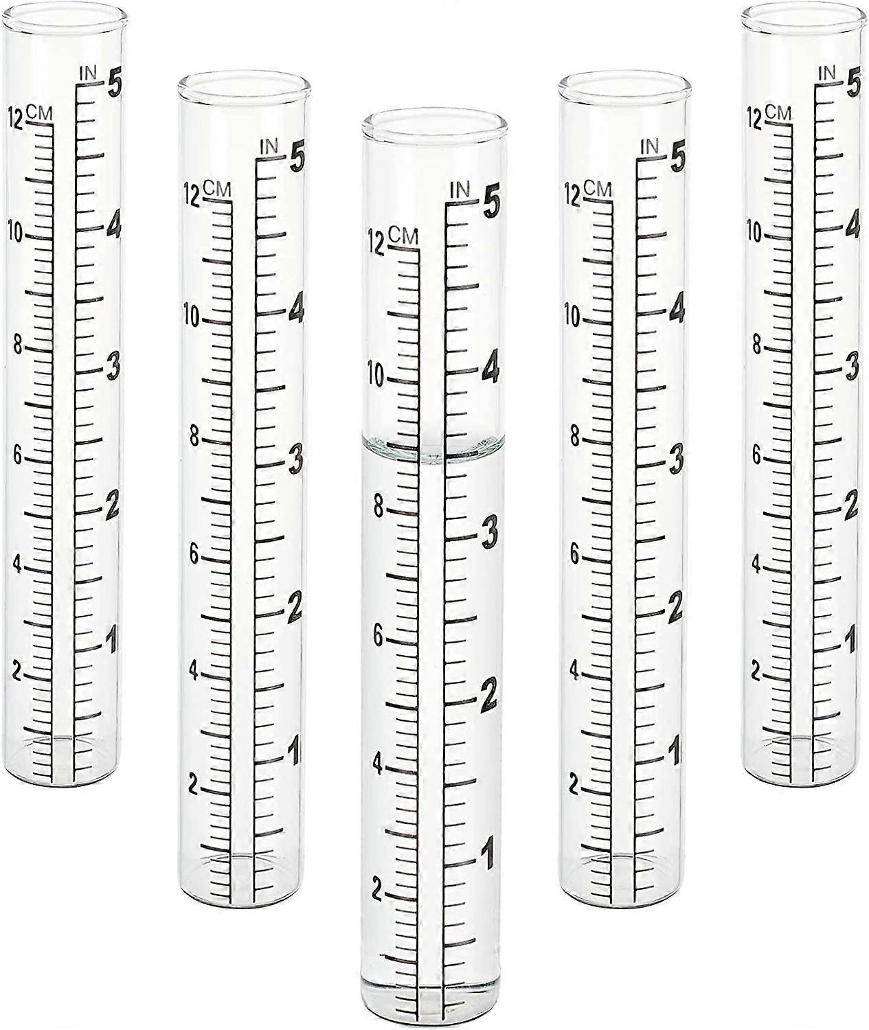 5 Pack 5" Replacement Glass Tubes for Rain Gauges, Compatible with Standard Models, Transparent Cylindrical Measuring Vials for Garden, Yard, Home